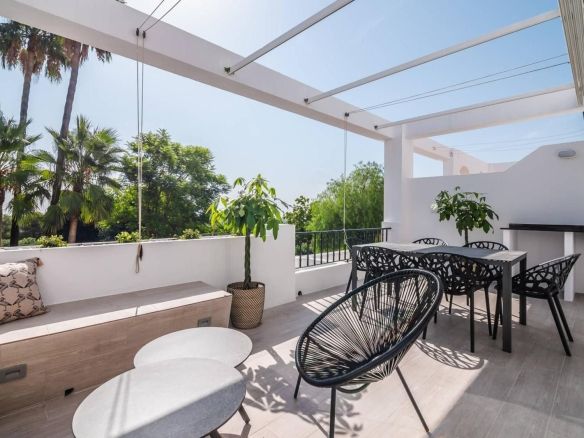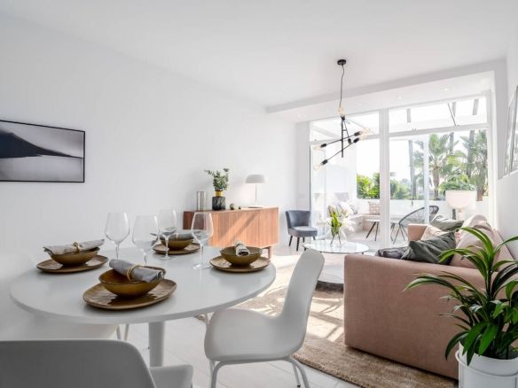 Elegant 3-bedroom apartment with sea views located in the peaceful and prestigious urbanization Mirador 1, just 200 meters from the entrance of La Quinta Golf and 100 meters from the renowned 5-star Westin Hotel. This beautifully renovated first-floor apartment is ideal as a luxurious holiday retreat or a comfortable permanent residence.