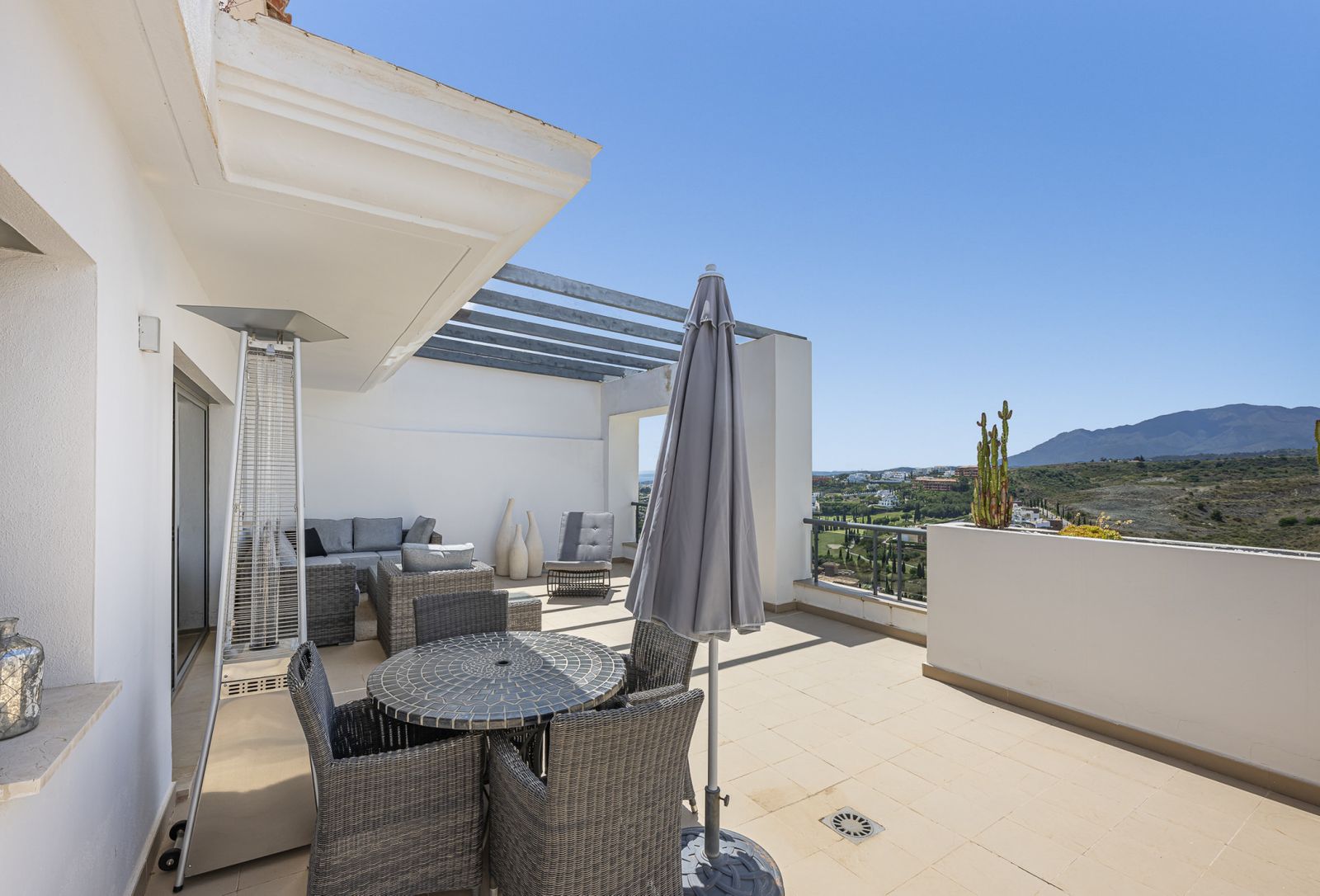 Spectacular luxury penthouse located in Los Flamingos, Benahavís — one of the most exclusive areas on the Costa del Sol. With breathtaking panoramic views stretching from the prestigious Villa Padierna resort to the Mediterranean Sea, Gibraltar, and the African coastline, this property embodies the pinnacle of elegant, contemporary living. Boasting over 100 m² of terraces, it provides the perfect setting to enjoy unforgettable sunrises and sunsets.