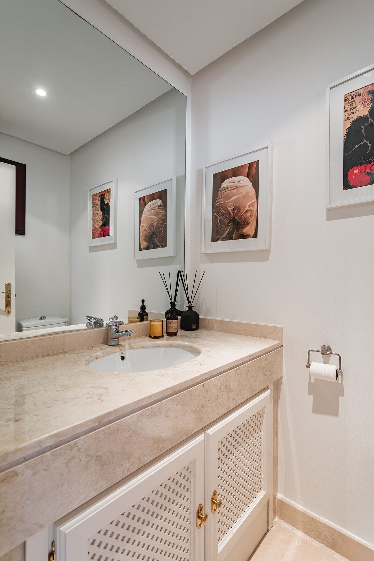 Bathed in natural light, the apartment features a generous living and dining area with working fireplace, that opens onto a partially covered terrace with panoramic views across the Mediterranean, Gibraltar, and Africa; a fully equipped, independent kitchen with ample workspace and well compartmented spacious cabinets; two generous sized en-suite double bedrooms with fitted wardrobes and with the master enjoying direct terrace access; as well as a guest toilet that adds convenience for visiting friends and family.