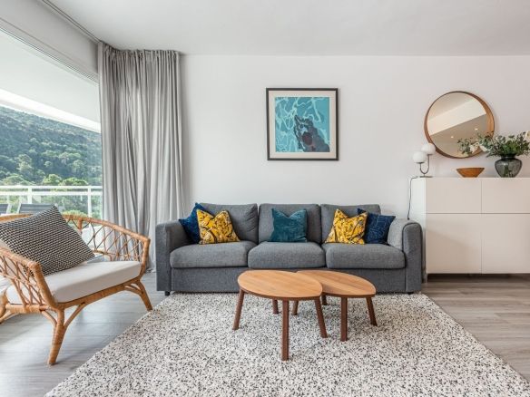 Inside, the apartment has been thoughtfully designed to maximize natural light and space. Its open-plan layout seamlessly connects the fully equipped kitchen with the dining and living areas, creating a functional and welcoming environment, perfect for daily life as well as entertaining guests. High-quality finishes and carefully chosen details add to the modern and comfortable feel of the home.