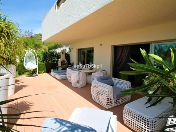 Amazing and exclusive ground floor apartment located in the prime luxury gated development in Benahavis municipality. This beautiful home consist of an ample and bright lounge – dining room, a modern and fully fitted kitchen, 2 guest bedrooms which one of them is with en-suite, a family bathroom and finally a large master bedroom with dressing room, private bathroom and with acess to the large terrace ideal for entertainment or enjoying al fresco dining with family and friends. The development itself is highly sought after, being one of very few on the coast with this design. There are two communal swimming pools surrounded by stunning manicured gardens, 24h security, underground parking, storeroom and just 600m away from the local commercial centre in the award winning La Heredia, where you will find a bakery, butchers, a popular bars and restaurants.