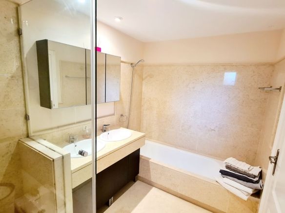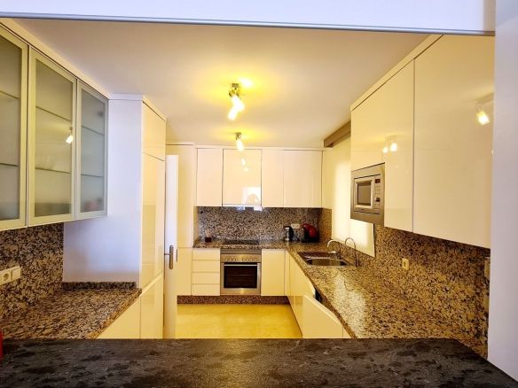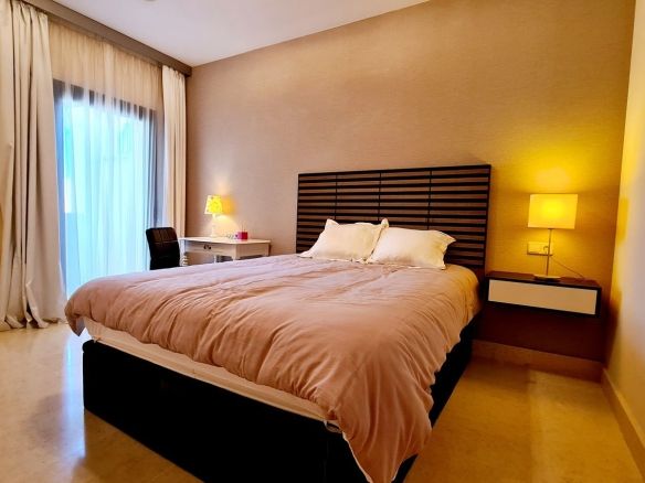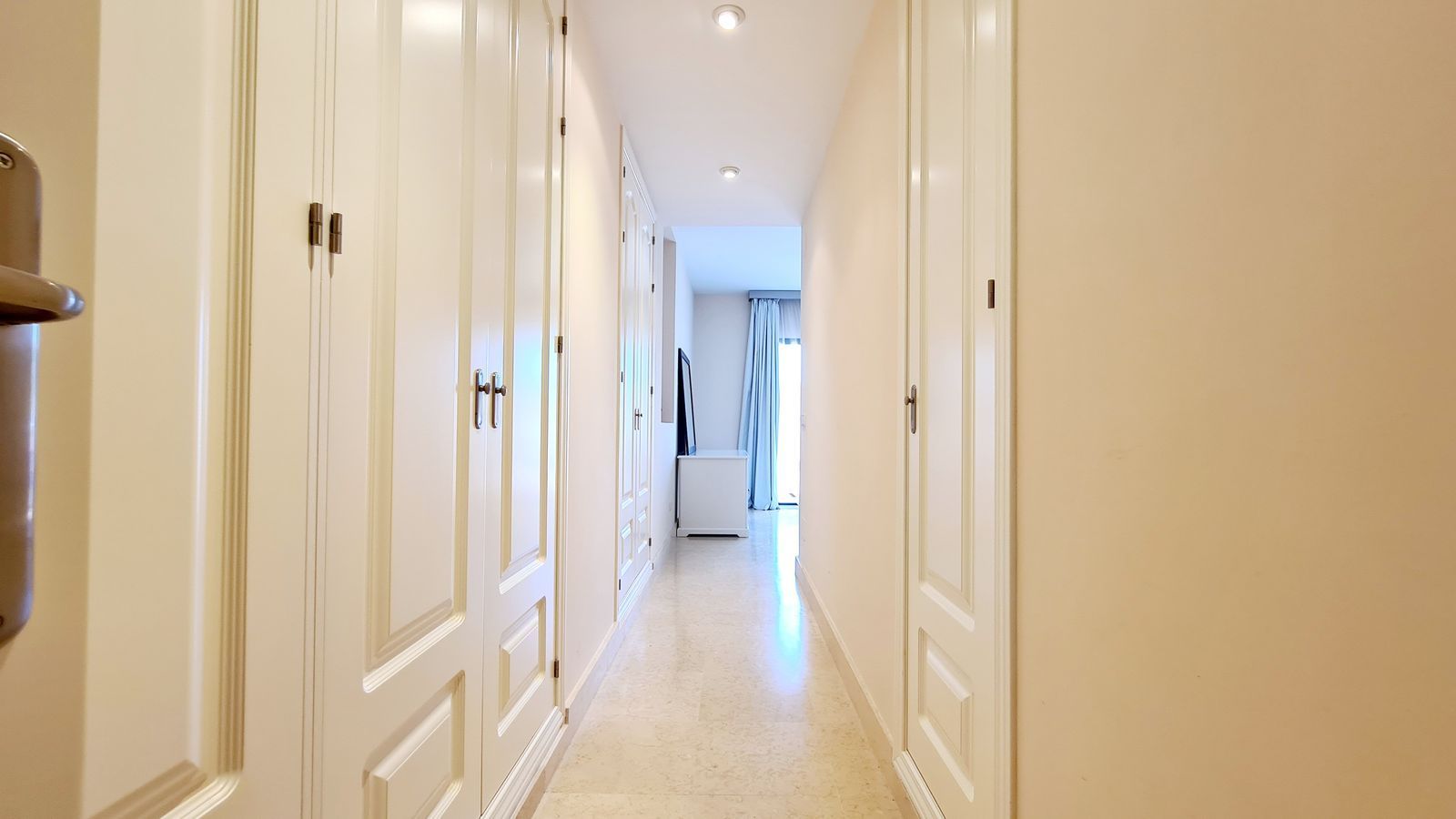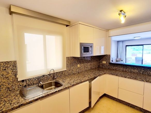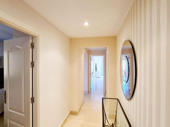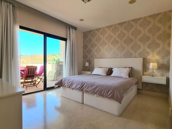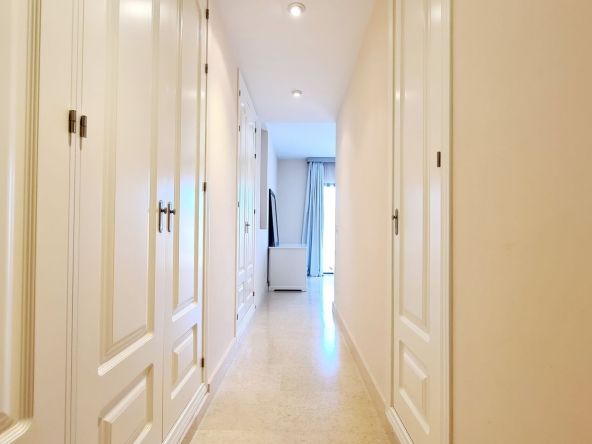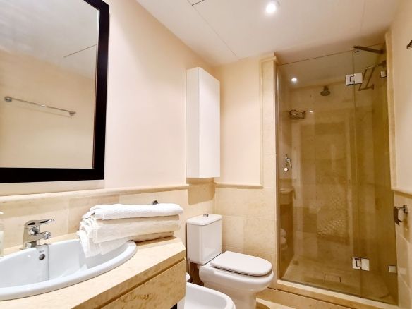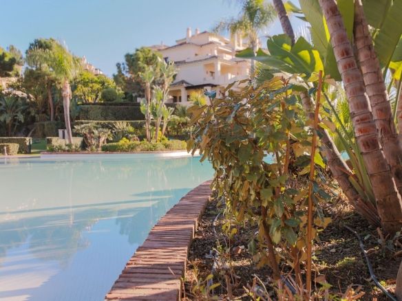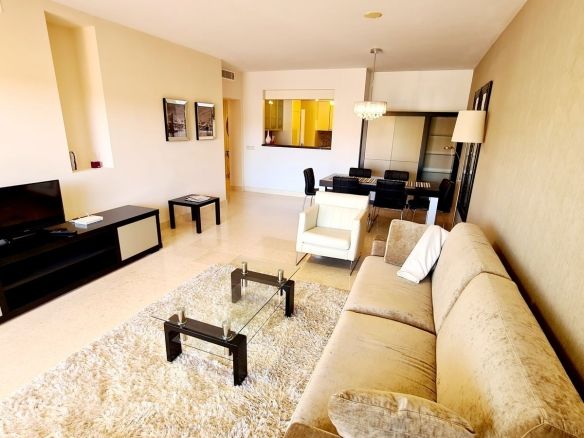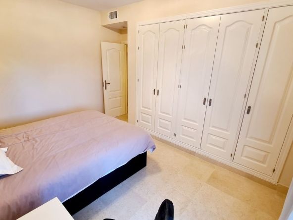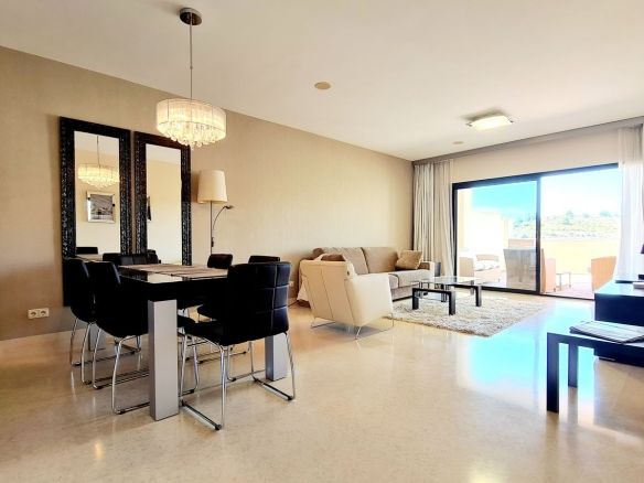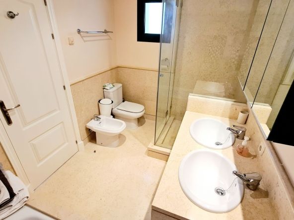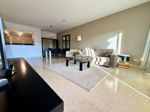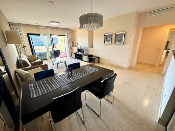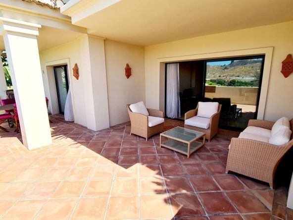 Beautiful and spacious 2 bedroom apartment located in the five star urbanisation of Capanes Del Golf, Benahavis. This apartment enjoys wonderful golf, lake and mountain views. The kitchen has been made open plan into the lounge. This apartment can very easily be converted into a 3 bedroom if you so wish as there is plenty of space to do this change. Both the master bedroom and second bedroom have en suite bathrooms. The property enjoys a large terrace to enjoy the morning sun. You will enjoy beautiful sunsets from this terrace. There is one storeroom and one parking space in the garage.