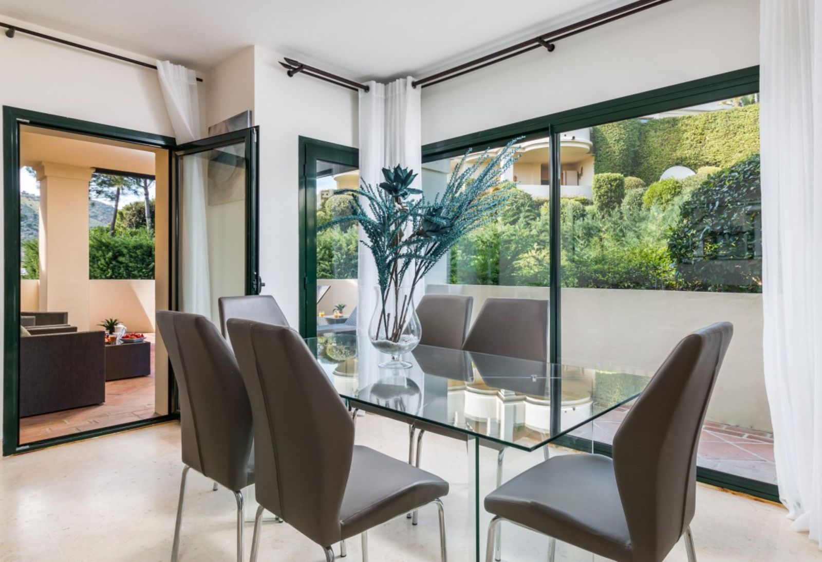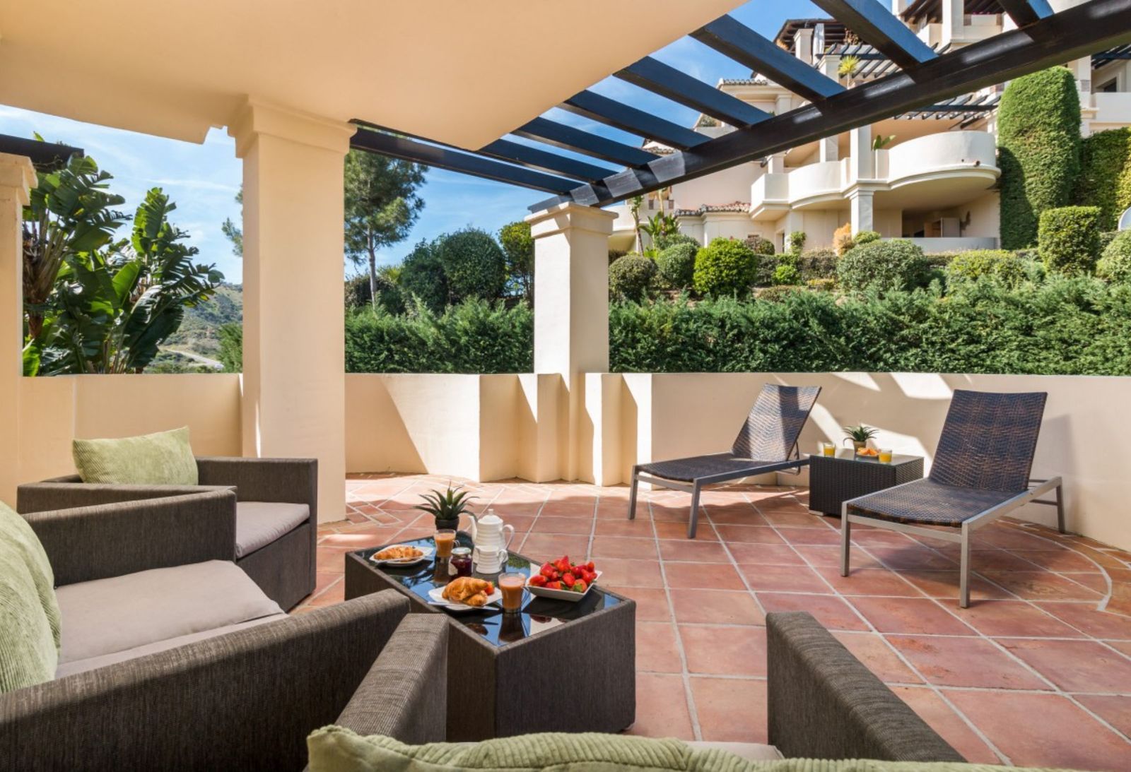Capanes del Golf is a luxury development located between the coast and the village of Benahavis and only 15 minutes to the famous Puerto Banus and Marbella. The living room has direct access to the large north east facing terrace; the kitchen is fully fitted with modern appliances.