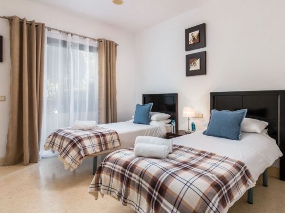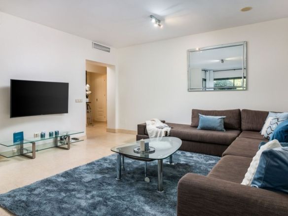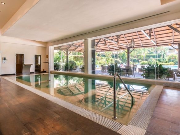 The apartment is on the ground floor and has hot and cold air conditioning throughout. It is a luxurious apartment with marble floors and contemporary furnishings. The development is surrounded by its own golf course and is fully gated with 24 hour security. The grounds have been thoughtfully landscaped and there are a number of pools, including the beautiful indoor pool, gym and spa area.