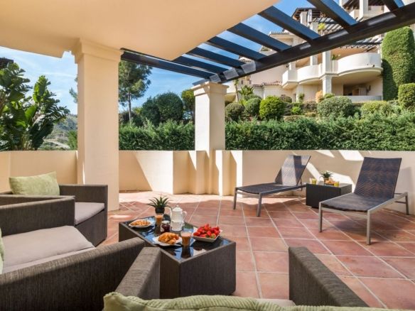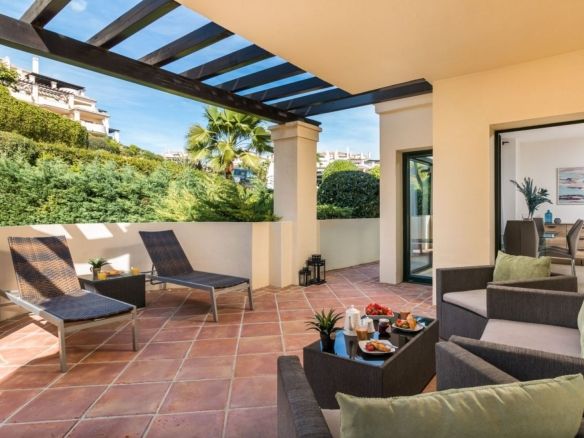 Capanes del Golf is a luxury development located between the coast and the village of Benahavis and only 15 minutes to the famous Puerto Banus and Marbella. The living room has direct access to the large north east facing terrace; the kitchen is fully fitted with modern appliances.