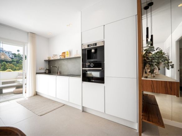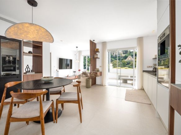 Apartment Oslo is a top-floor residence in La Quinta that offers exceptional views and refined living. The home features two bedrooms and three bathrooms across 110 square meters of space. Every area has been designed for comfort and ease, with an open layout that brings light into every corner. The large south- and east-facing terrace provides a seamless connection between indoor and outdoor living, perfect for relaxing or dining under the stars.