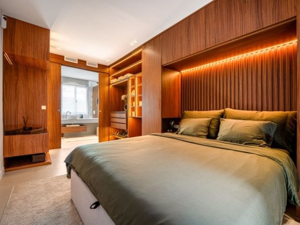 Inside, clean lines and quality finishes define the apartment. Natural textures and handcrafted wooden furniture create warmth and harmony. The kitchen is equipped with premium appliances and a practical design that suits both everyday use and entertaining. Every room feels calm and balanced, following a Scandinavian style that combines elegance with simplicity.