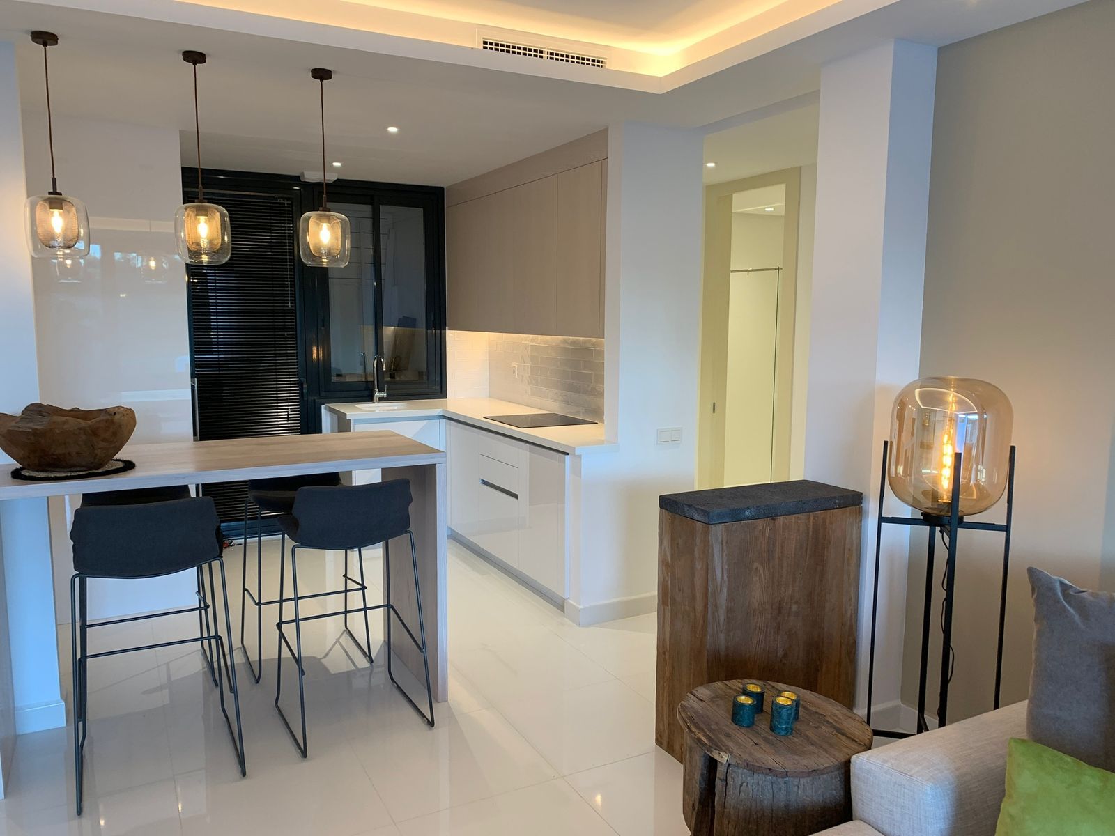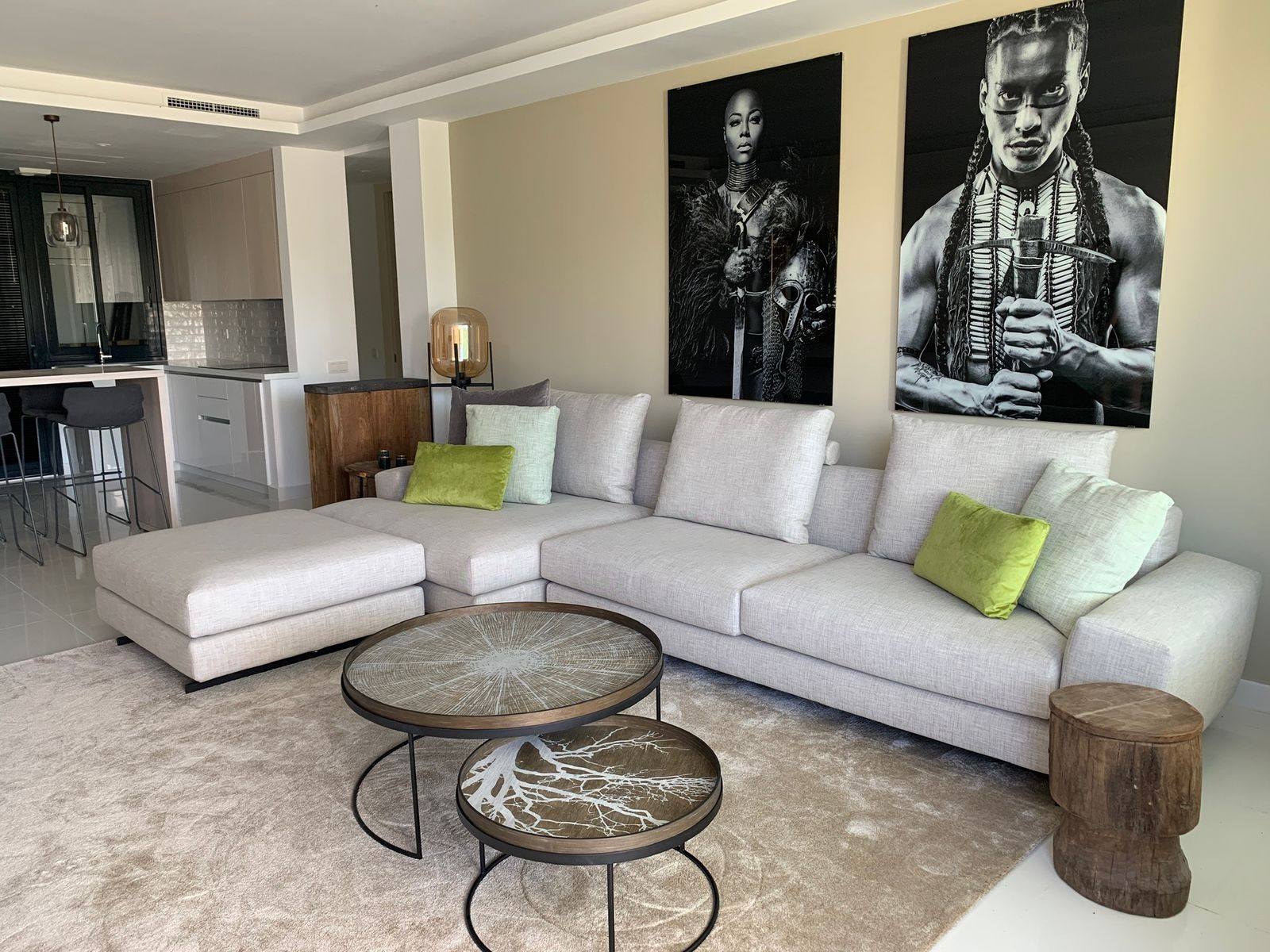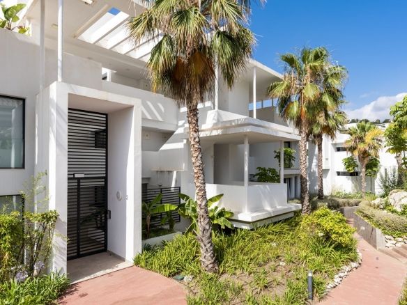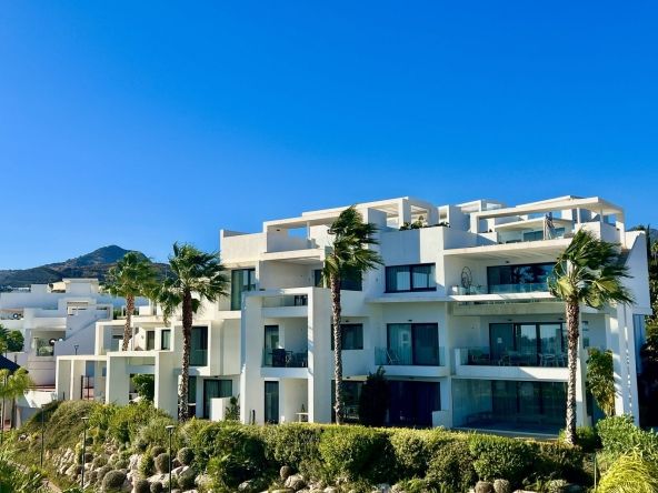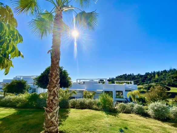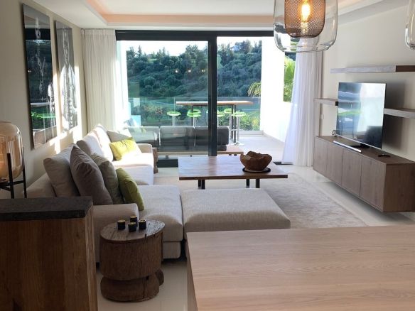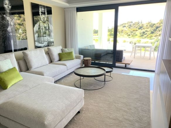 5* Luxury and contemporary middle floor apartment. The avant-garde architecture is designed by the famous architects Villarroel – Torrico @ Puente Romano Marbella. The setting is unique and just in front of Atalaya Golf ( 36 holes ) with unobstructed panoramic south orientated views, overlooking the golf courses, garden and parties sea view. Atalaya driving range is literally at your doorstep. The quiet and front golf location is unbeatable. Situated at the end of a cull the sack ( Atalaya Golf course and driving range ) between all-new luxury contemporary villa's in the exclusive secured urbanisation of La Alqueria – Benahavis, 6 minutes to Puerto Banus, 10 minutes to Marbella, 12 minutes to Estepona, 2 minutes to a very nice "Mercadona" supermarket and International School & College.