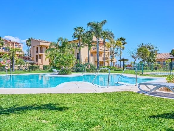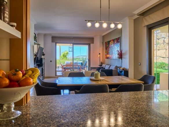 Incredible ground floor apartment for sale in Hacienda de Señorío de Cifuentes! This charming property offers spectacular views of the sea and Gibraltar. Enjoy the tranquility and beauty of the surroundings from its spacious terraces, connected to a large garden, both with sea views.