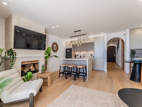 This beautifully refurbished traditional Spanish townhouse combines classic charm with a sleek modern touch. Thoughtfully redesigned, it now features an open-plan kitchen and living area, enhanced by expansive floor-to-ceiling glass doors that create a seamless connection between the indoor and outdoor spaces.