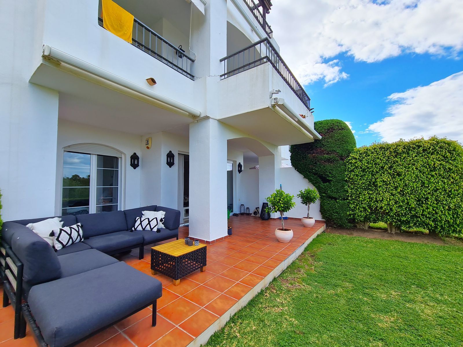Located in a quiet and safe residential area, surrounded by nature, this apartment is very well connected to the AP7 motorway, which connects the entire Costa del Sol. Just a 5-minute drive from Guadalmina Alta and the prestigious Atalaya School, with the beach, supermarkets, pharmacies, and restaurants 10 minutes away. The property was completely renovated in 2025, so everything is as good as new. Upon entering the apartment, we find an entrance hall leading to the spacious living-dining room with beautiful views of the garden, which also has access to a large, partially covered terrace. It also has a spacious, brand-new, modern kitchen equipped with high-end appliances and access to the separate laundry room. The property's bedrooms and bathrooms are distributed through a corridor. The spacious master bedroom features a large built-in wardrobe with access to and views of the terrace/garden. It also has a fully renovated en-suite bathroom in a contemporary style, equipped with a shower and a window that provides abundant natural light and ventilation. The two single bedrooms have built-in wardrobes and are bright. One of them has access to the garden. The second bathroom is located at the entrance to the hallway, connecting to the common areas of the house (living/dining/kitchen) and is located next to the two single bedrooms. This full bathroom also has a shower. The property enjoys the convenience of having a private parking space, in addition to enjoying the community gardens and saltwater pools. WE RECOMMEND A VIEWING!!