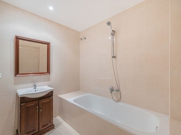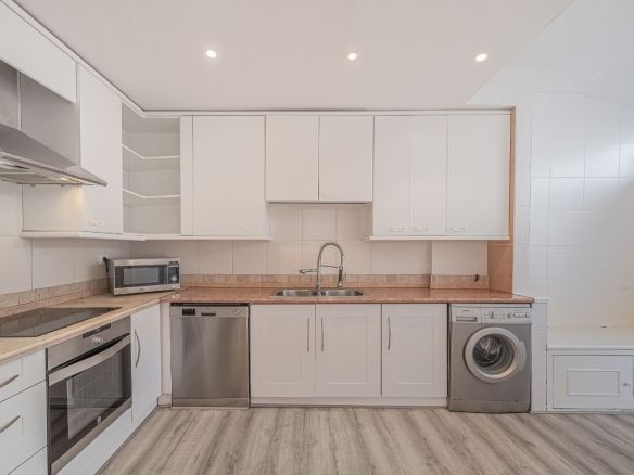 Main Level: A bright and spacious lounge with dining area, a fully fitted separate kitchen, guest lavatory, and a private terrace.