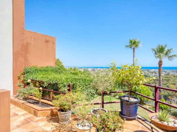 Beautiful townhouse in the prestigious Los Jaralillos community, located in the sought-after El Paraíso area of Benahavís. Within walking distance to the beach, golf courses, shops, restaurants, cafés, and international schools. Spread over four floors, this charming home features private gardens and offers stunning sea views from several terraces. The main floor comprises a fully equipped kitchen, spacious living-dining area, laundry area, guest toilet, and a large terrace with sea views that provides direct access to the private garden. The first floor offers two bedrooms, both with access to a terrace with sea views. The master bedroom is en suite, and this floor also includes an additional bathroom and a small sitting area. The upper floor is dedicated to a solarium with a generous terrace, perfect for sunbathing or enjoying the views. The basement houses the machine room and a utility room. The property offers the perfect combination of comfort and location, within a gated community, with beautifully maintained gardens and a large communal swimming pool. Additional features include wooden flooring, air conditioning, and a parking space. This townhouse combines comfort, privacy, and a privileged location.