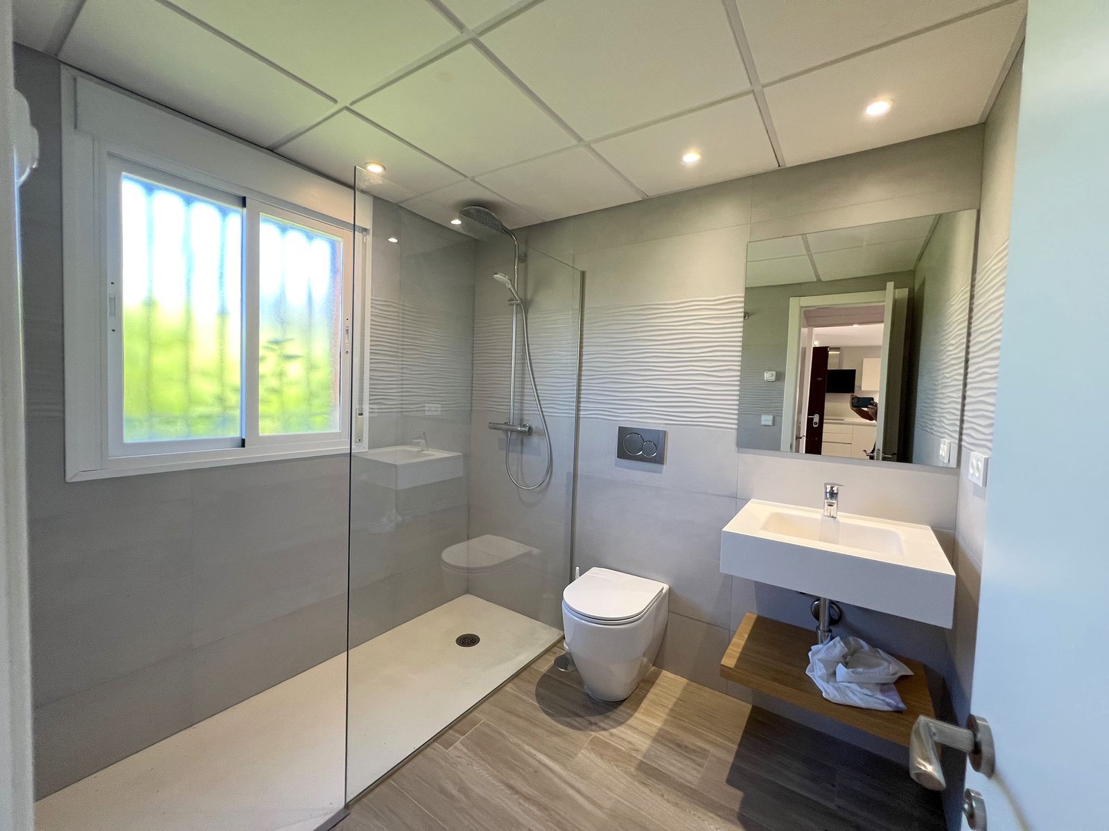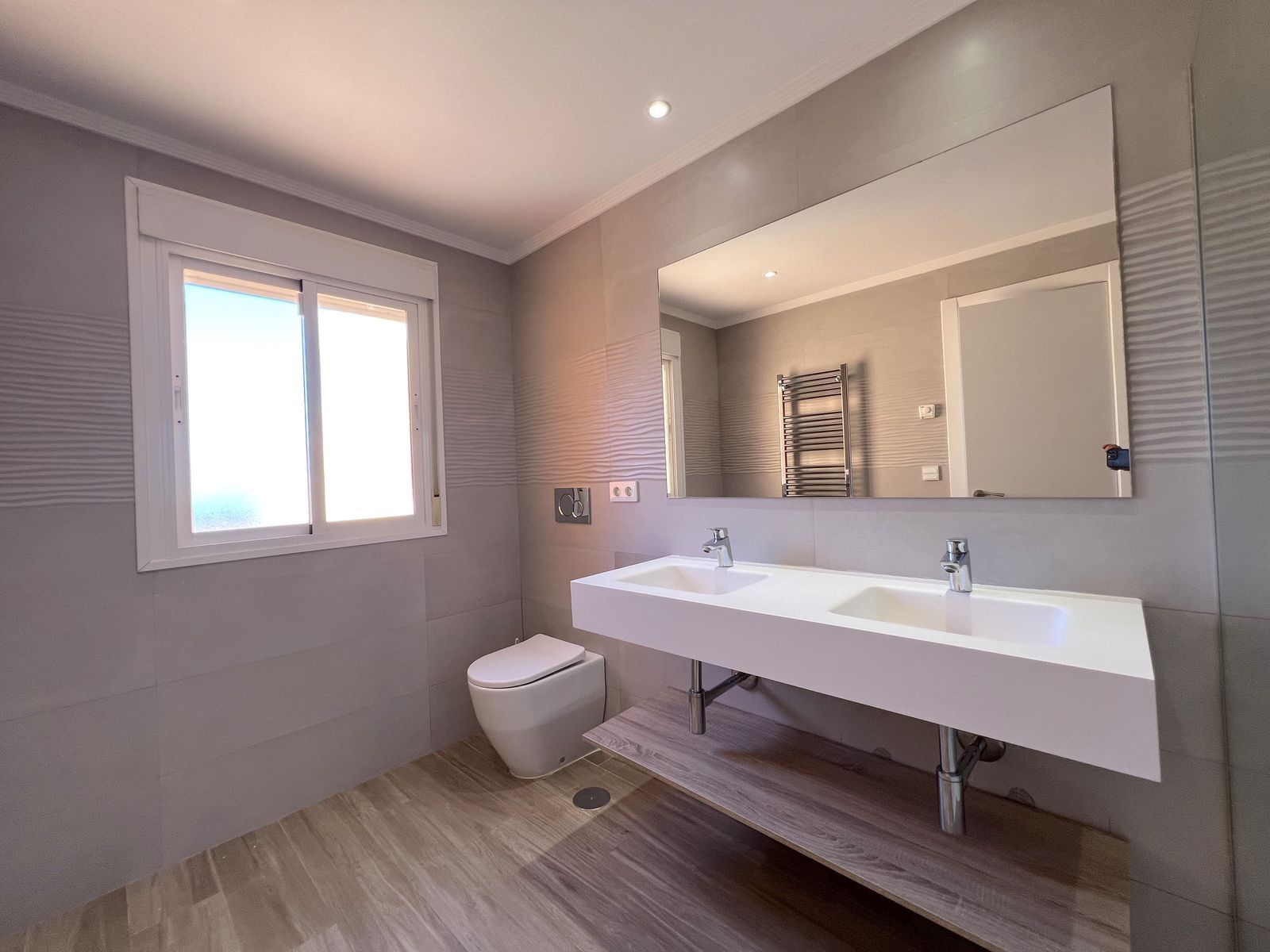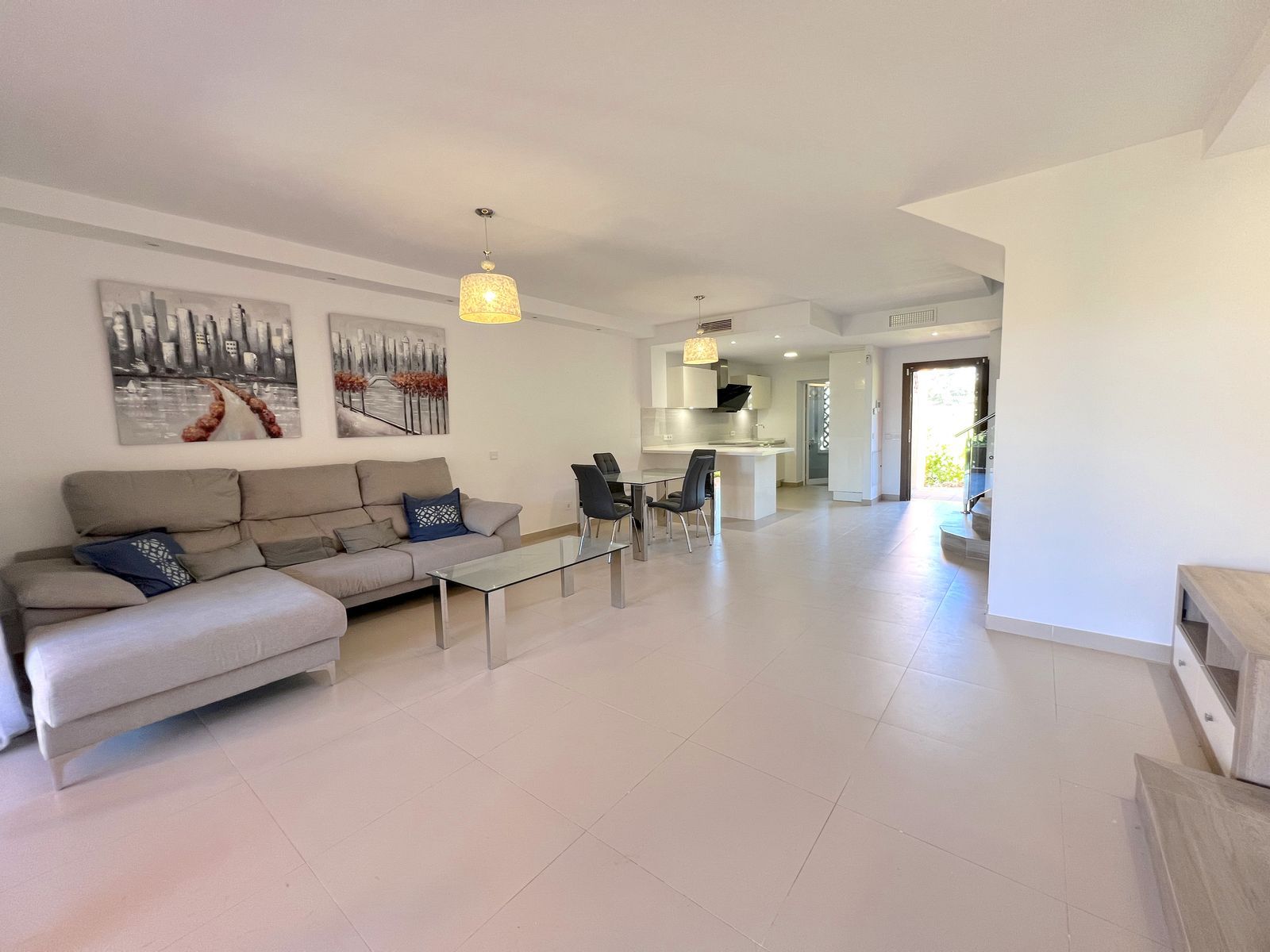 Its south-west facing living room has a large sliding door that opens onto a porch overlooking a private garden that leads to a large communal garden with swimming pool and an extensive garden area. The open plan kitchen leads through to the dining room. The upper floor is the sleeping area. The hallway gives access to the bedrooms and its bathrooms, one of them en suite. The solarium is a perfect space designed to enjoy the sun. It is ideal for resting, relaxing and sharing it with friends or family. From the top of the house, you can see the communal tropical garden, the swimming pool, the mountains and the sea.