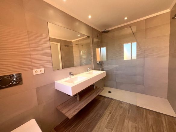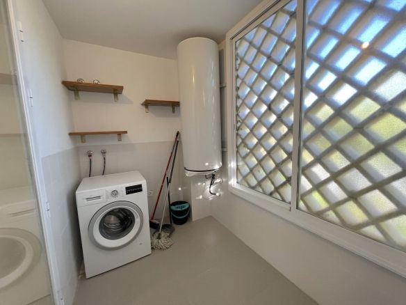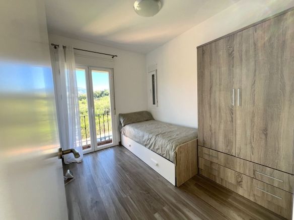 Its south-west facing living room has a large sliding door that opens onto a porch overlooking a private garden that leads to a large communal garden with swimming pool and an extensive garden area. The open plan kitchen leads through to the dining room. The upper floor is the sleeping area. The hallway gives access to the bedrooms and its bathrooms, one of them en suite. The solarium is a perfect space designed to enjoy the sun. It is ideal for resting, relaxing and sharing it with friends or family. From the top of the house, you can see the communal tropical garden, the swimming pool, the mountains and the sea.