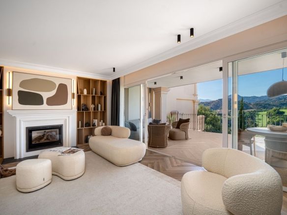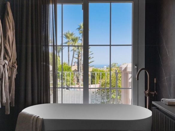 Townhouse The Nest is a fully renovated 3-bedroom, 3-bathroom home located in Nido de Los Halcones, Benahavis. Each bedroom has an en-suite bathroom with modern walk-in showers and underfloor heating. The property also includes a guest toilet, private carport, and access to a communal pool and garden. Positioned frontline golf, it offers beautiful views of the mountains and golf course.