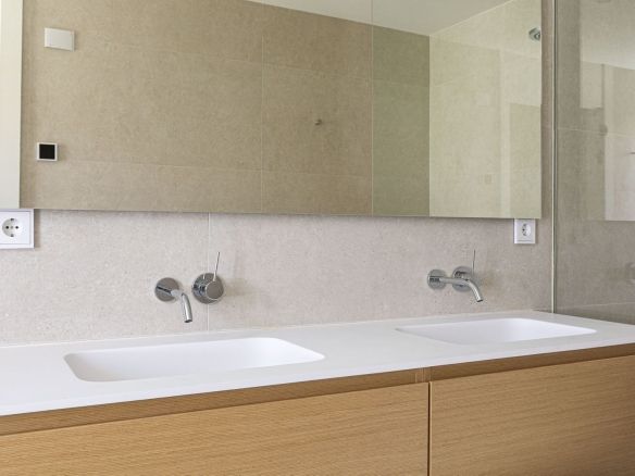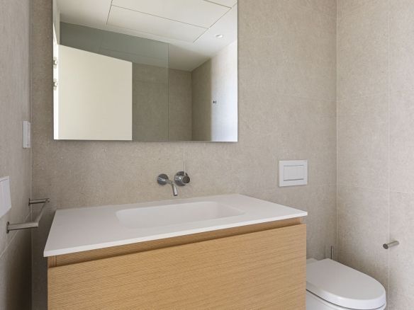 The apartment extends across 256 m², with 128 m² of refined interiors and a 105 m² terrace that blurs the boundaries between indoor and outdoor living. The layout is designed to balance relaxation and entertainment, featuring three spacious bedrooms, two of them with en-suite bathrooms, alongside an additional guest bathroom. Each space is crafted to maximize light and views, while providing residents with privacy and convenience.