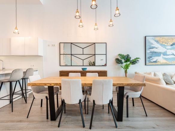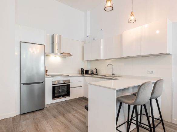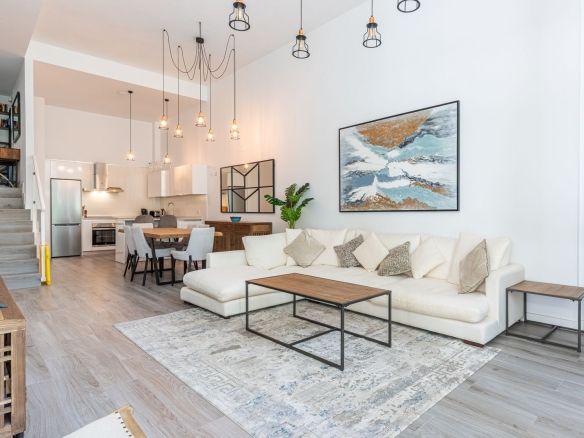 This apartment is a great example of spaciousness and sophistication. It has three spacious bedrooms, including an elegant master bedroom with an en-suite bathroom. The open-concept living room connects seamlessly with the kitchen and features double-height ceilings, creating a spacious and welcoming ambience.