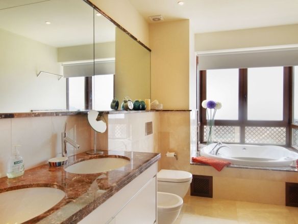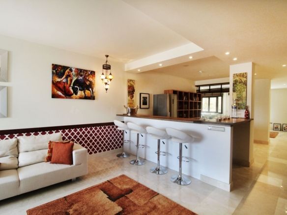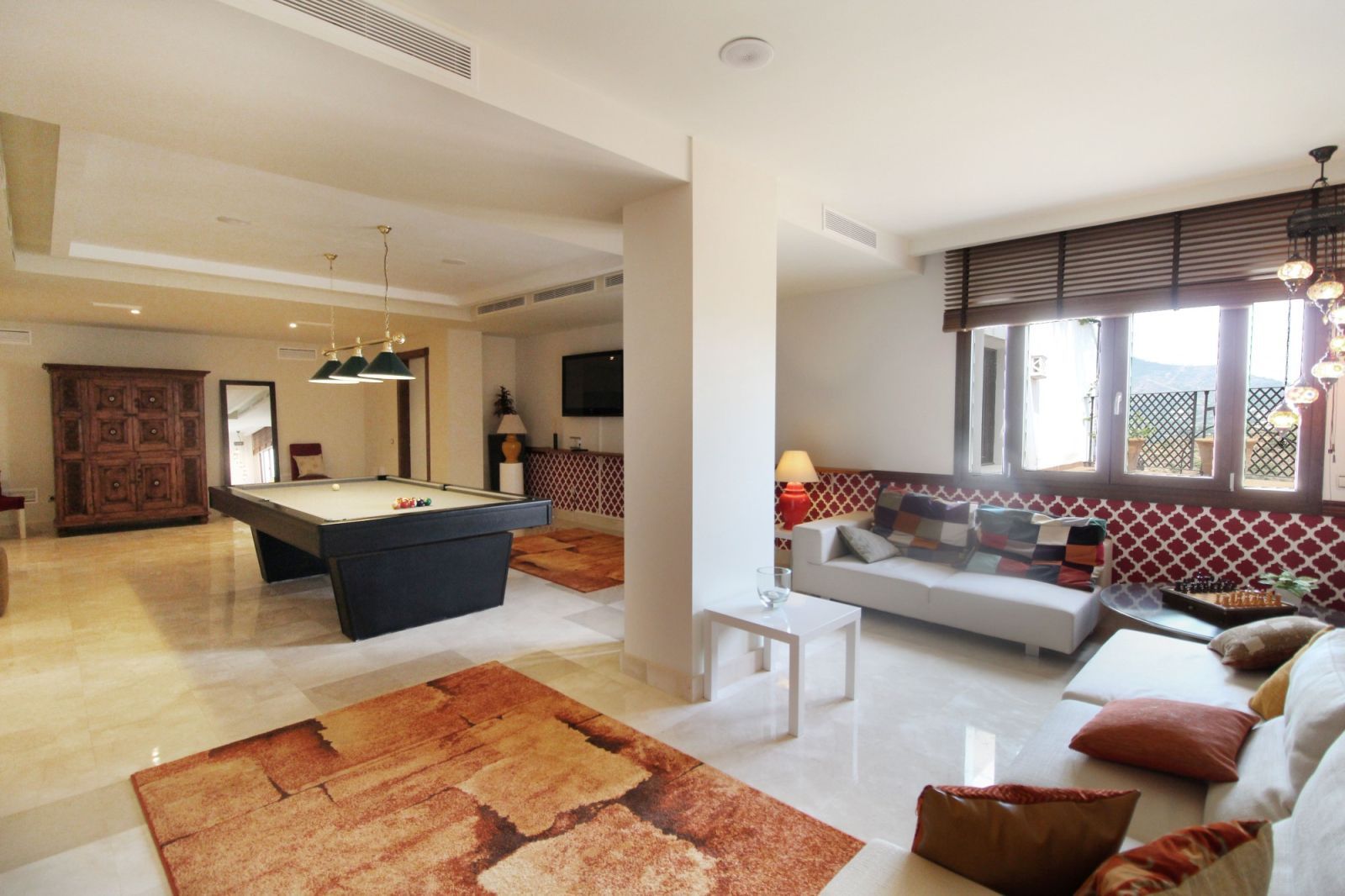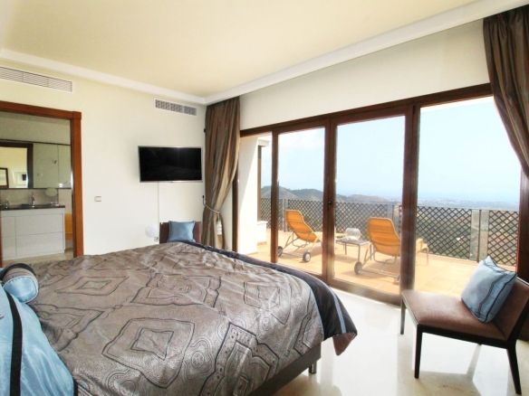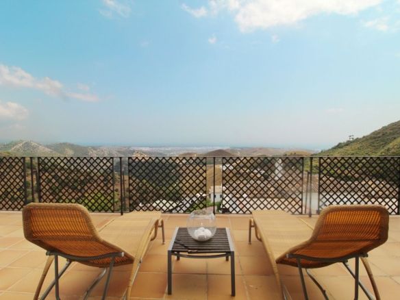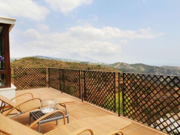 Situated on a gated community just a short walk from the beautiful village of Benahavis and all its famous restaurants, and just seven kilometres inland from the glamourous coastal hotspots of Puerto Banus and Marbella lies this contemporary south facing villa with absolutely stunning views out over the Mediterranean. This is a very spacious property with five large en-suite bedrooms distributed over three floors. The living & dining areas are open plan with lots of windows giving it a bright and airy feel throughout the day. Off the living room is a covered terrace which looks out to the heated pool and gardens, both maintained by the community and enjoy those amazing views out over the Mediterranean and La Concha mountain. The dining area is separated by the central fireplace and leads through to the large modern kitchen and breakfast area. The enormous lower level is currently used as a games room with bar, cinema and gym and enjoys natural light and views over the mountains. The standard of finish is high with underfloor heating in the bathrooms and good quality doors, windows and marble floors. The villa has private parking for two cars and plenty of storage rooms. The development is gated and has 24h security guards. This villa would make a fantastic low maintenance permanent residence or a perfect lock up and leave holiday home, which also has fantastic rental potential.
