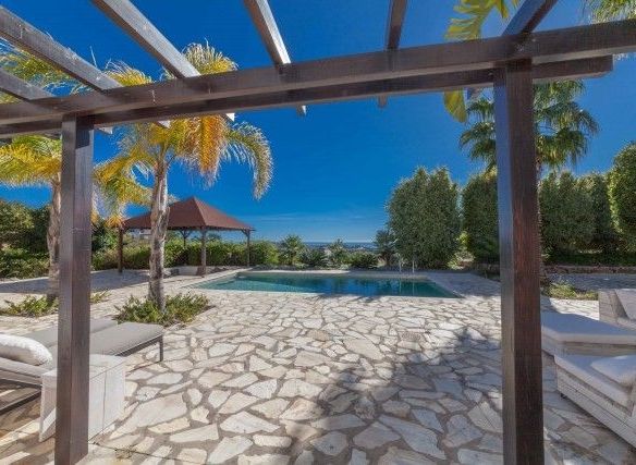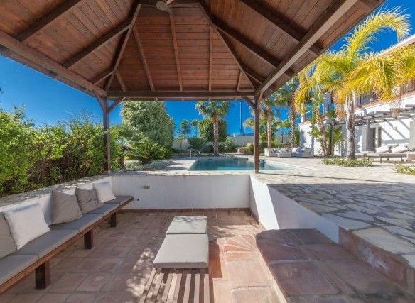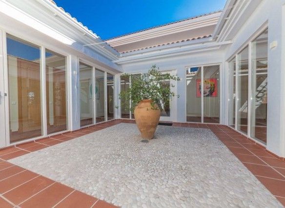 Access to the property is via automatic gates and a long driveway with a double carport and turning space. The driveway also leads to the main garage. Near the villa entrance is a large ornamental fish pond, and the traditional Andalusian-style courtyard features an olive tree. The gardens are landscaped for low maintenance, with no grass and various areas to sit and enjoy the surroundings throughout the year. To the rear is the swimming pool with sun terrace and a pergola with sunken seating.