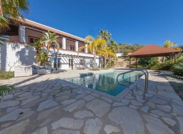 This cortijo-style villa was designed by a Dutch architect for his own family, combining traditional Spanish elements with a clean, modern layout. The main house includes four bedrooms, and there is also a self-contained guest apartment and a large garage. The outdoor areas are a major feature, with thoughtful landscaping creating an elegant and relaxed atmosphere.
