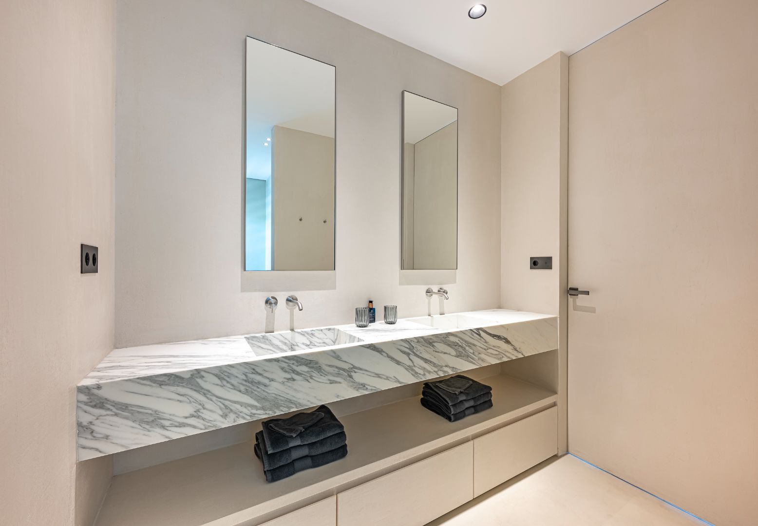 The kitchen has been designed by the prestigious Bulthaup brand and the appliances by the renowned Miele and Bora Dhu brands. In the bathrooms, the prestigious firm Villeroy & Boch is present.