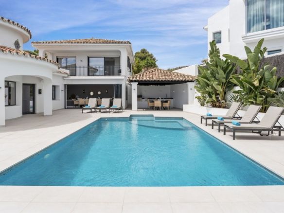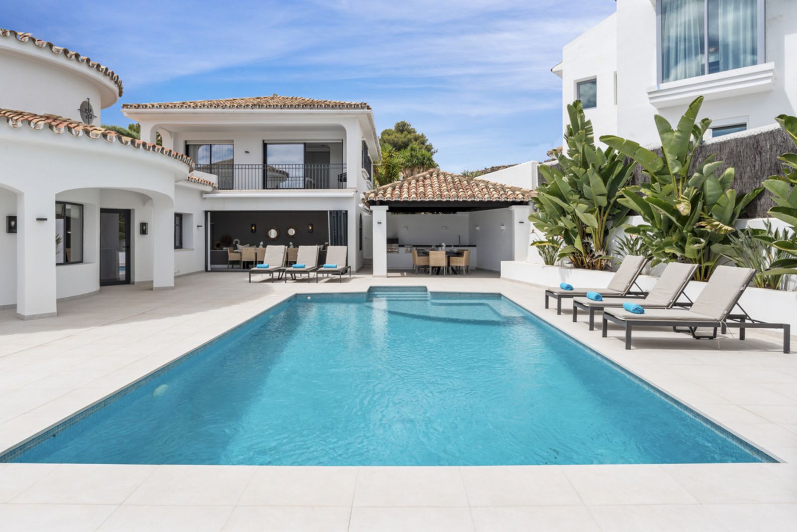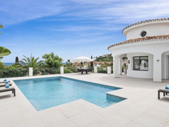 This Andalusian-style villa, fully renovated to the highest standards, combines authenticity with modern elegance. Ideally located in the enclave of El Paraíso Alto, Benahavís, the home offers breathtaking panoramic sea and golf views, while being just minutes from Marbella, Puerto Banús, and Estepona.