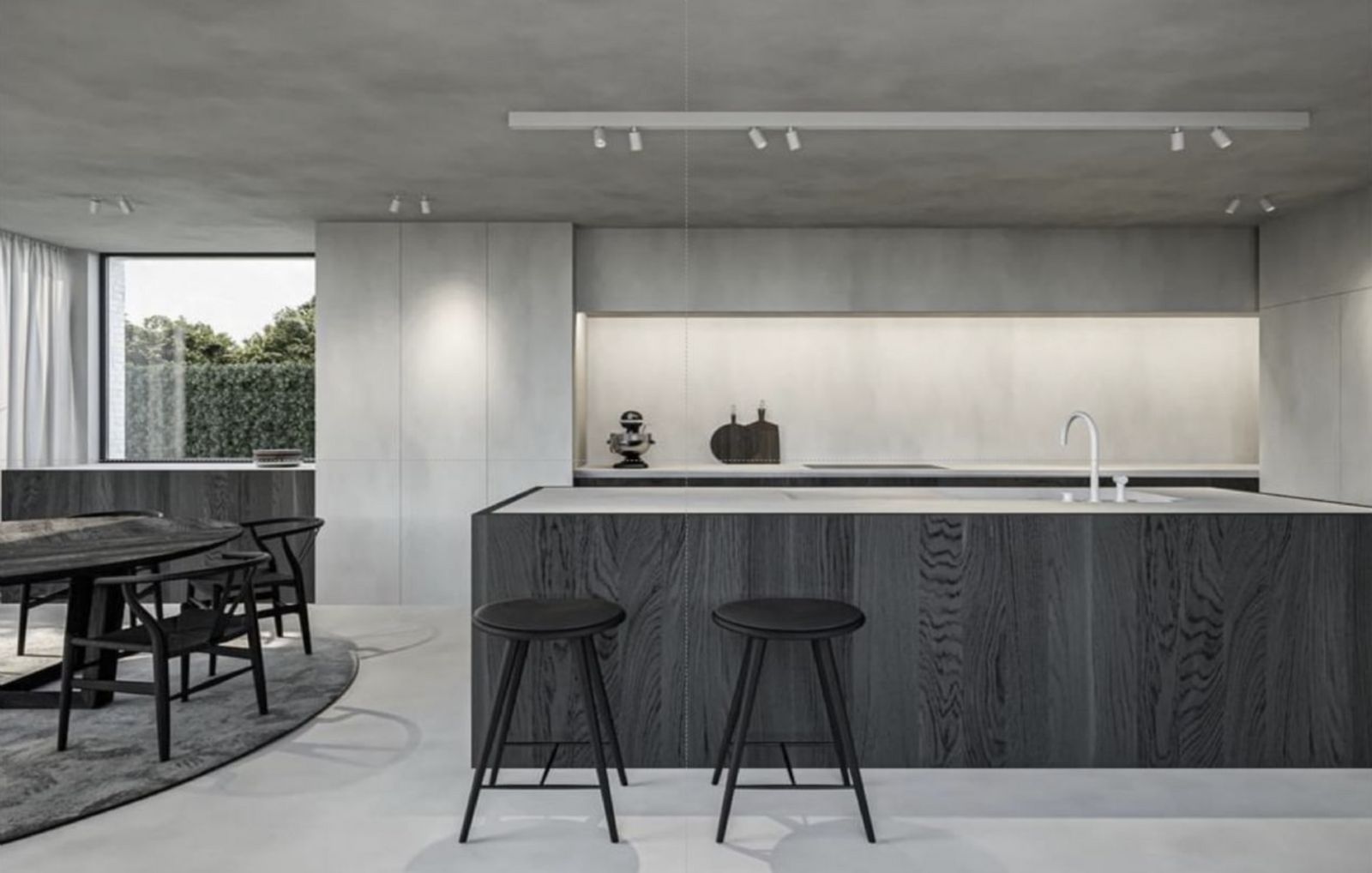 – Kitchen with steel frame doors covered with COVERLAM  and kitchen island from COVERLAM