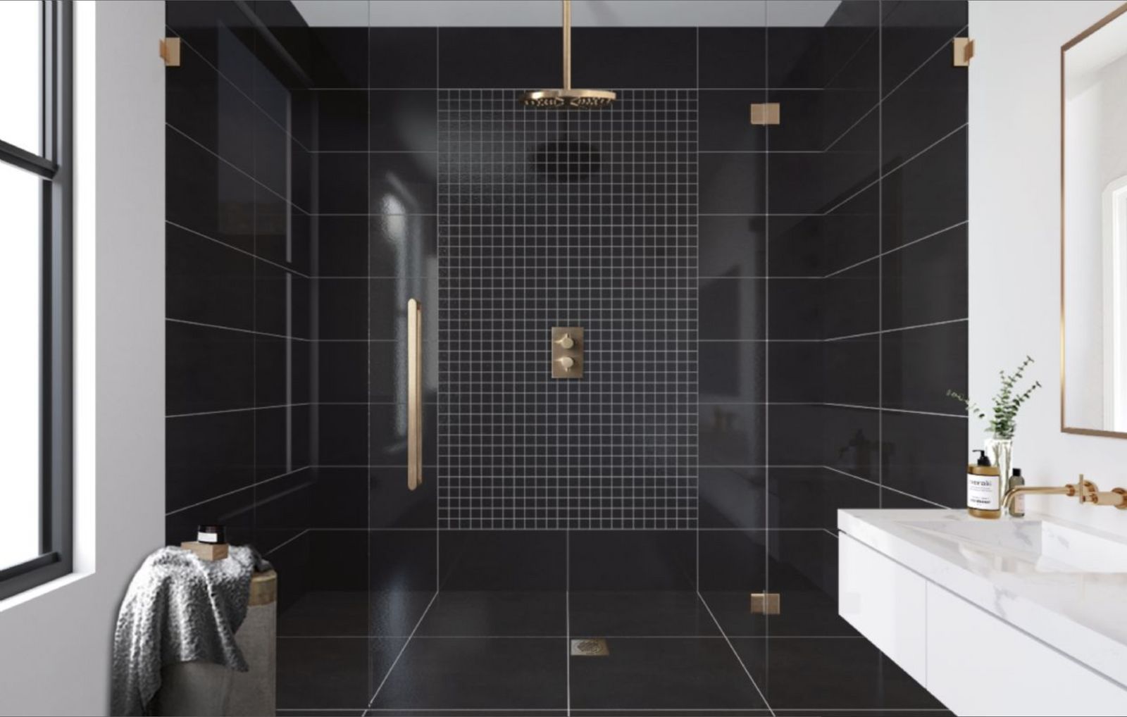 – Bathroom walls with COVERLAM plates (GRESPANIA) 2700X1200 (Colour to choose)