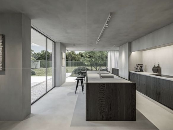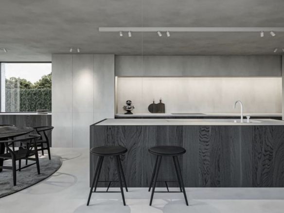 – Kitchen with steel frame doors covered with COVERLAM  and kitchen island from COVERLAM