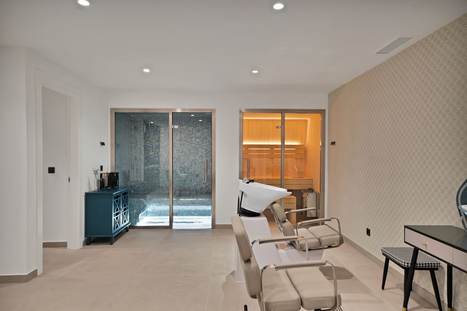 Luxury is evident in every detail, from the private spa, which includes a Turkish sauna and Swedish sauna, to the fully equipped gym with state-of-the-art fitness technology.