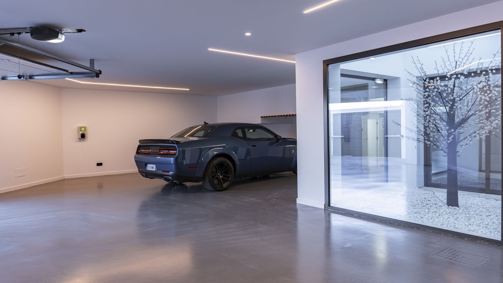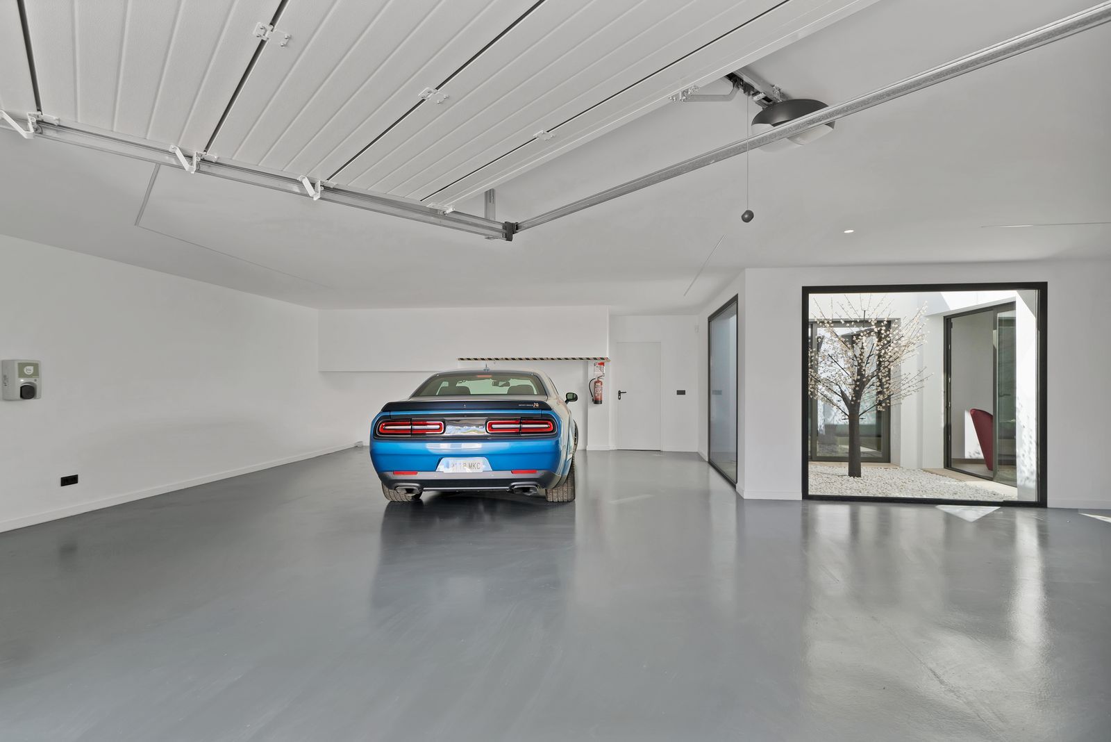 Indoor garage with space for 3 cars.