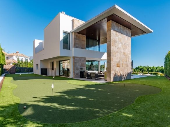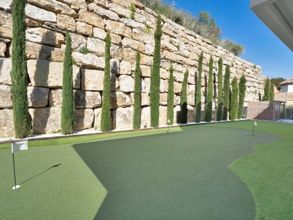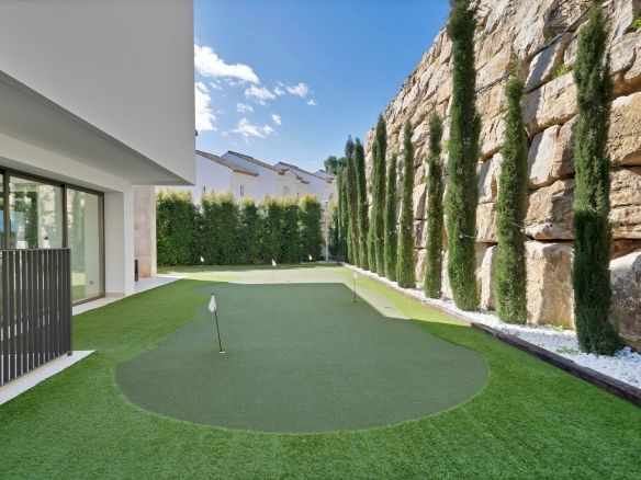 Designed for golf enthusiasts, the villa features putting greens in the garden and a professional golf simulator, offering a premium experience without leaving home.