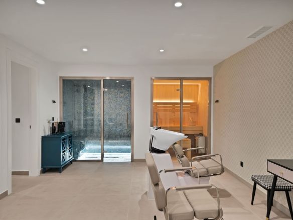 Luxury is evident in every detail, from the private spa, which includes a Turkish sauna and Swedish sauna, to the fully equipped gym with state-of-the-art fitness technology.