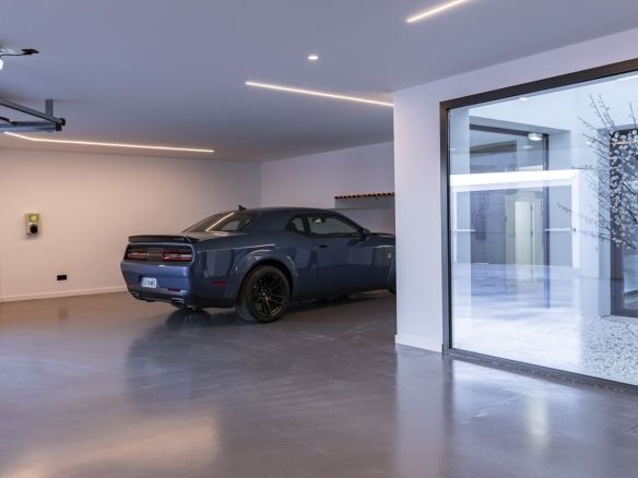 Indoor garage with space for 3 cars.