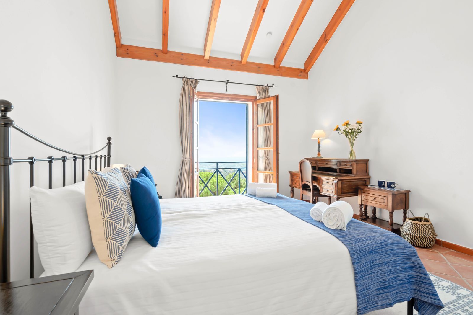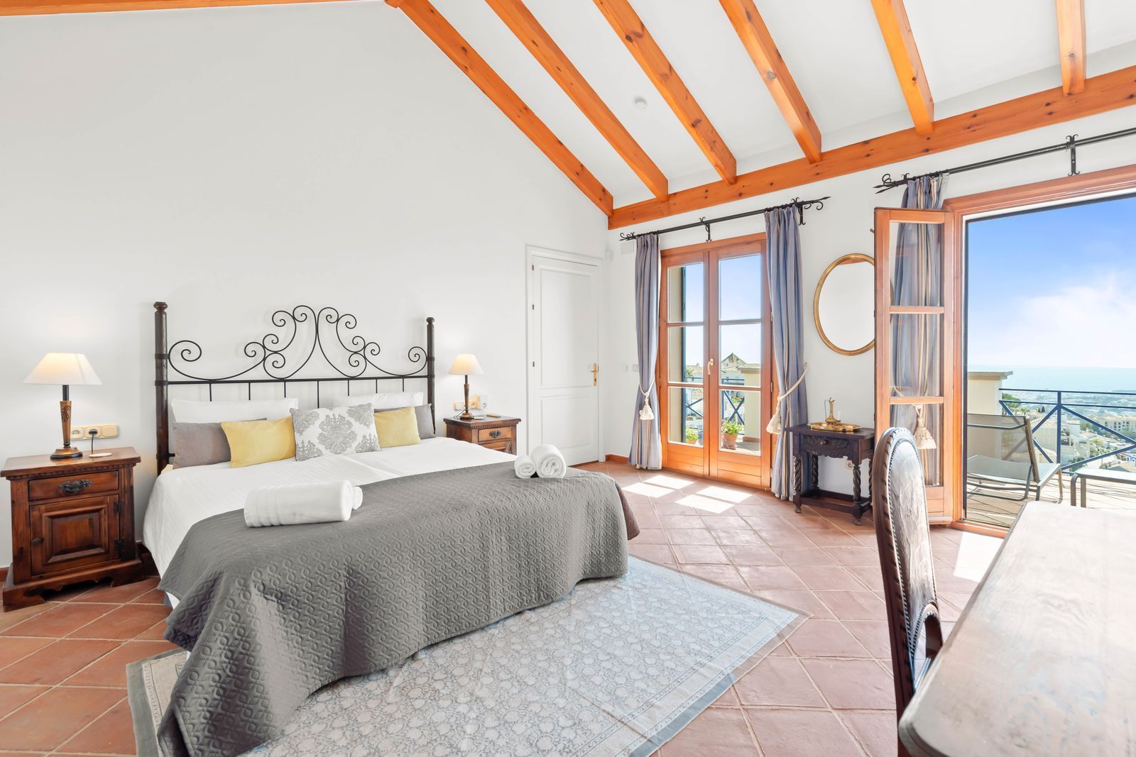 As you enter the property, you are greeted by an impressive a double-height ceiling. On the ground floor you’ll find a beautiful hall which flows into the spacious living room on the right, also with its own fireplace and dining area. Going back to the hall and straight ahead you’ll enter to the fully equipped kitchen with a dining area for casual meals and pantry. Additionally, with two bedroom and two bathroom. From this level you can enter to the expansive terrace that provides ample space for relaxation and entertainment, with views extending across the lush gardens and out towards the sea.