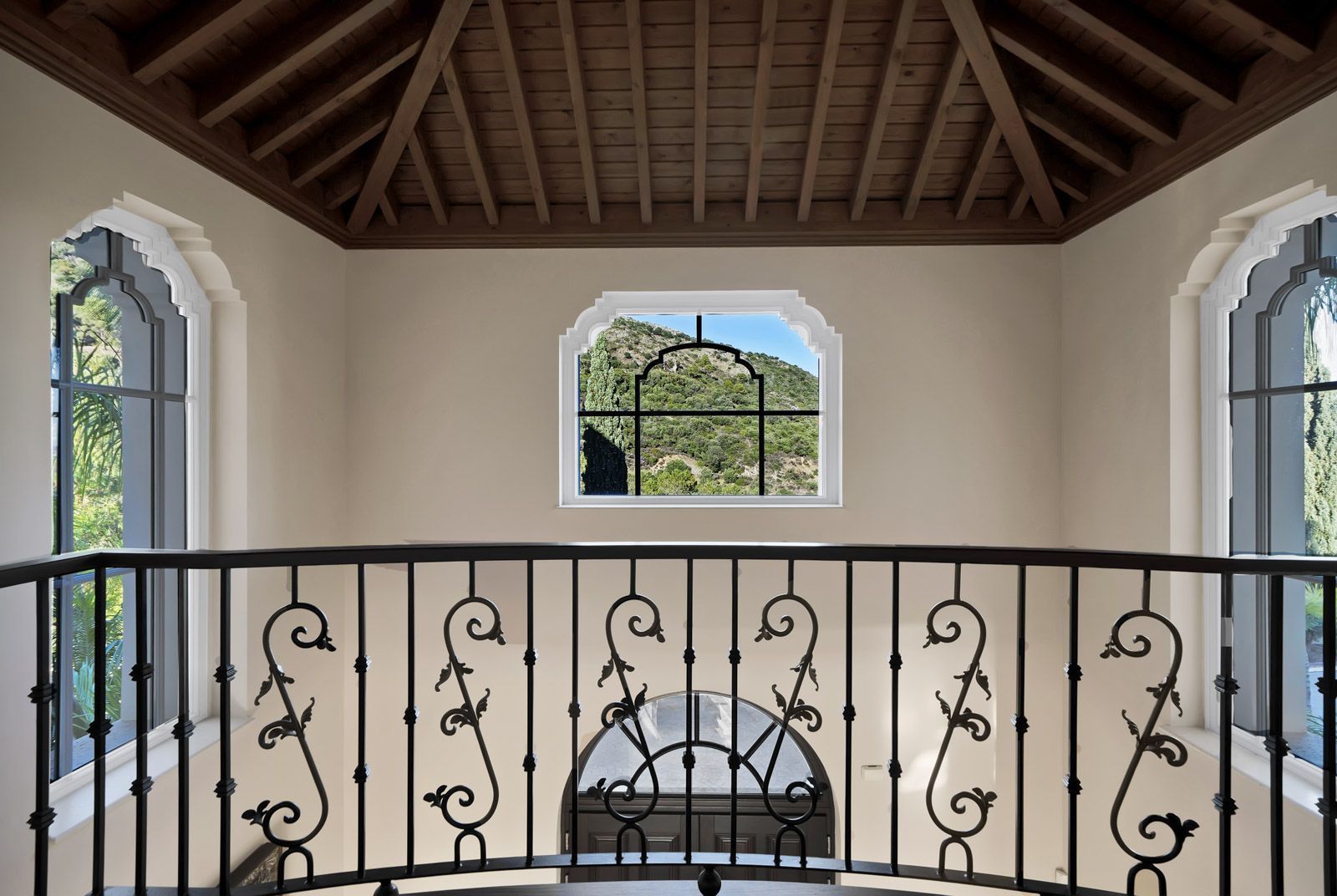 This exclusive property offers stunning views of the sea, the Spanish and African coasts and Gibraltar and is situated in a very private and protected location in the elegant and gated Marbella Club Golf Resort. Built with the highest quality; solid wooden floors, Travertino marble, custom made windows, excellent isolation, very modern domotic system, solar and heat pumps for hot water and heating, individually adjustable underfloor heating (solar energy) throughout the house, illuminated and heated swimming pool, poolside barbecue area, spa and gym area, wine cellar, elegant eat-in kitchen, spacious ensuite bedrooms with adjoining bathrooms, are just some of the many outstanding amenities of this beautiful home. The garden is a dream, it has been lovingly landscaped and planned by its owners and has a fully automatic irrigation system. The flat plateau plot has been secured on all sides and is well fenced. Marbella Club Golf Resort with its 18-hole golf course is very privileged and private, yet only 20 minutes away from Marbella, located in the middle of the beautiful Benahavis mountains. This residential area has a gated entrance and 24-hour security. Marbella Club Golf Resort has a wonderful restaurant just 10min walk from the villa where You can enjoy a wonderful meal and a glass of wine.