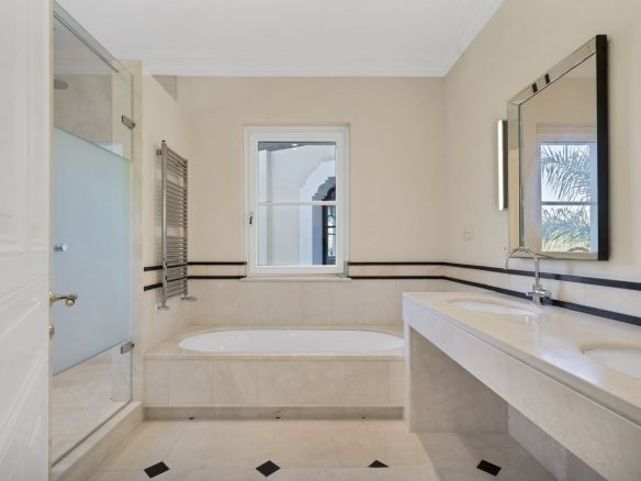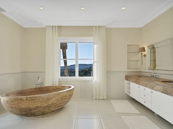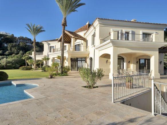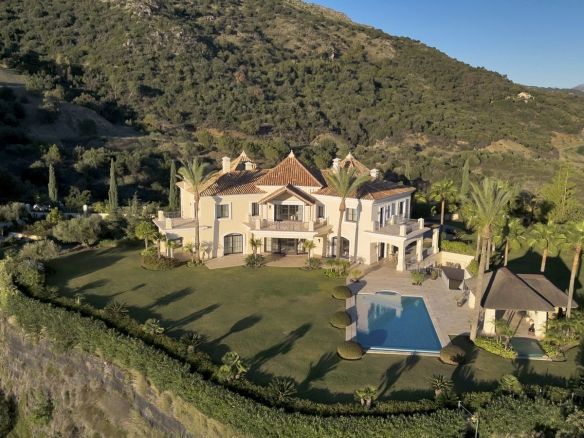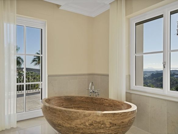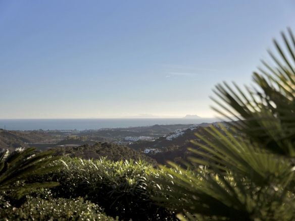 This exclusive property offers stunning views of the sea, the Spanish and African coasts and Gibraltar and is situated in a very private and protected location in the elegant and gated Marbella Club Golf Resort. Built with the highest quality; solid wooden floors, Travertino marble, custom made windows, excellent isolation, very modern domotic system, solar and heat pumps for hot water and heating, individually adjustable underfloor heating (solar energy) throughout the house, illuminated and heated swimming pool, poolside barbecue area, spa and gym area, wine cellar, elegant eat-in kitchen, spacious ensuite bedrooms with adjoining bathrooms, are just some of the many outstanding amenities of this beautiful home. The garden is a dream, it has been lovingly landscaped and planned by its owners and has a fully automatic irrigation system. The flat plateau plot has been secured on all sides and is well fenced. Marbella Club Golf Resort with its 18-hole golf course is very privileged and private, yet only 20 minutes away from Marbella, located in the middle of the beautiful Benahavis mountains. This residential area has a gated entrance and 24-hour security. Marbella Club Golf Resort has a wonderful restaurant just 10min walk from the villa where You can enjoy a wonderful meal and a glass of wine.
