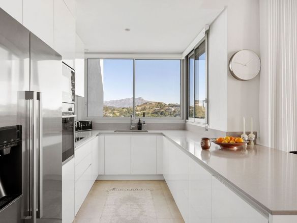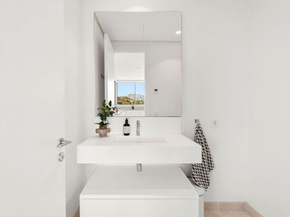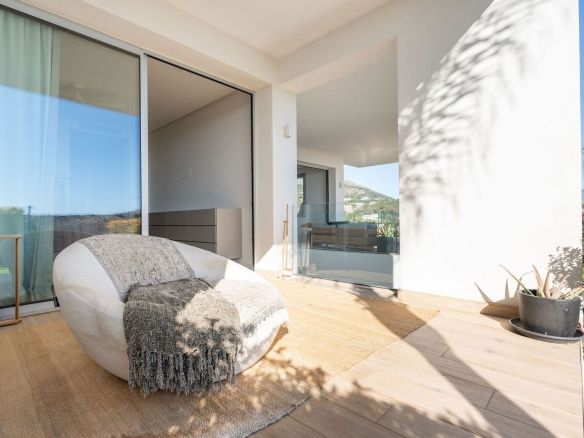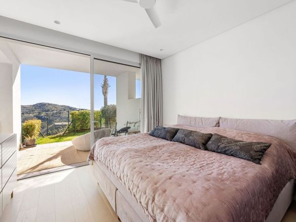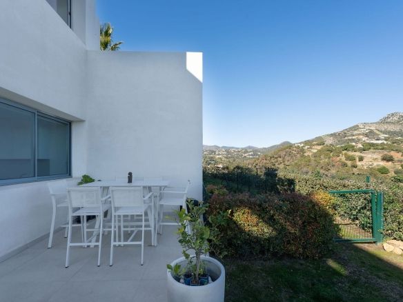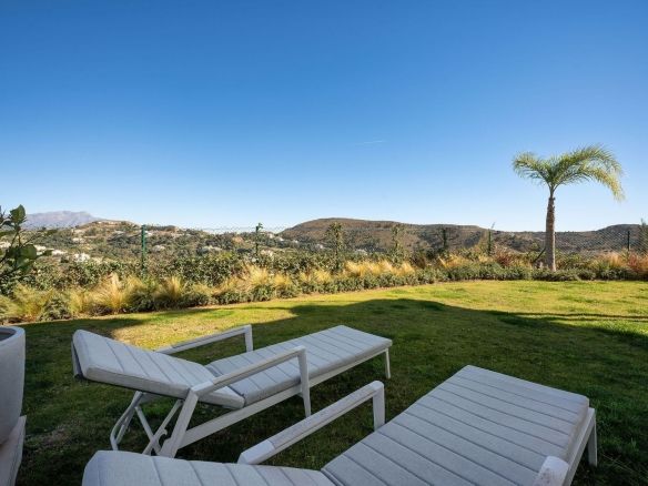 A great opportunity to buy this unique ground floor corner duplex apartment in the well-known Marbella Club Hills Development. Due to its corner position the apartment enjoys privacy with amazing sea and mountain views. The property has an open plan kitchen/living-dining room with sliding doors leading you out onto the terraces and private garden. On the same floor you have the master bedroom and due to the original design, an extension of approx 40m2 has been added where the current owners enjoy watching tv and a home office has been set up. On the lower floor you have the 2 spacious guest ensuite bedrooms both with access to the main terrace through the stairs. The apartment comes with 2 parking spaces and an oversized storage room. The development is completely gated, the pool area is very well equipped with a gym, sauna, changing rooms and even a boule court. Further development includes more sports facilities. A one-of-a-kind property that has to be seen.