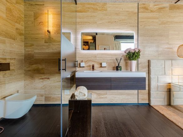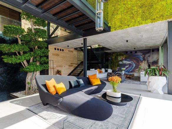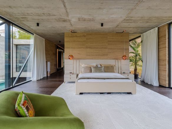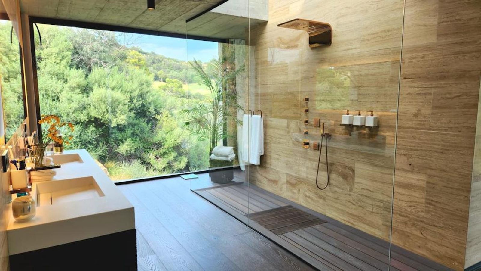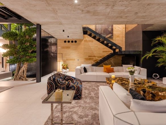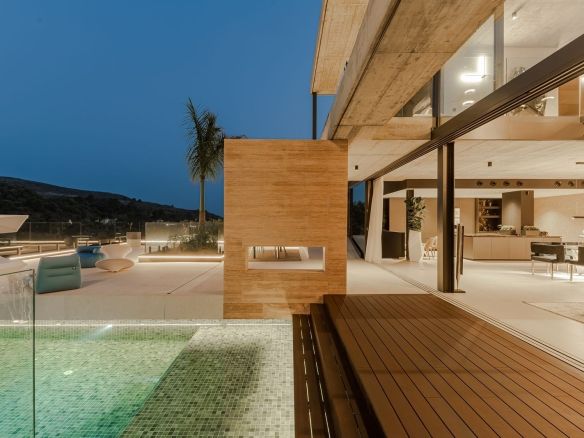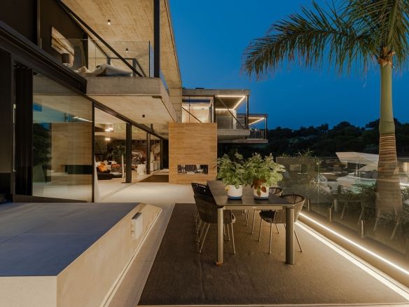 The villa boasts an exquisite layout, featuring 5 ensuite bedrooms that cantilever over the golf course, creating an enchanting sense of floating in the air. The expansive open-plan living areas, top-of-the-line kitchen and bathrooms, along with an infinity pool, internal water cascades, and an eye-catching outdoor feature fire, all contribute to an atmosphere of refined luxury.