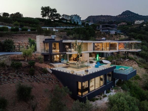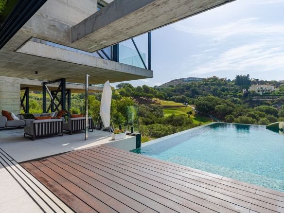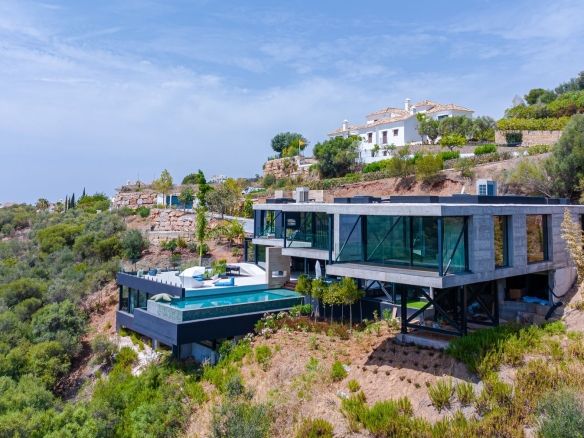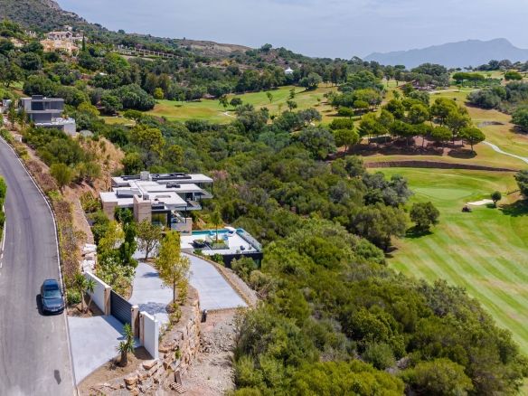 Presenting a State of the Art Contemporary luxury villa nestled on a secluded and serene plot, offering breathtaking golf and partial sea views. This south-east facing property gracefully perches on the rocks, commanding stunning vistas of the first fairway at Marbella Club Golf Resort.