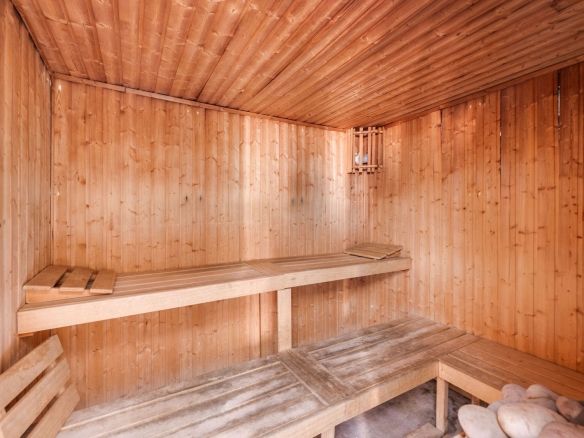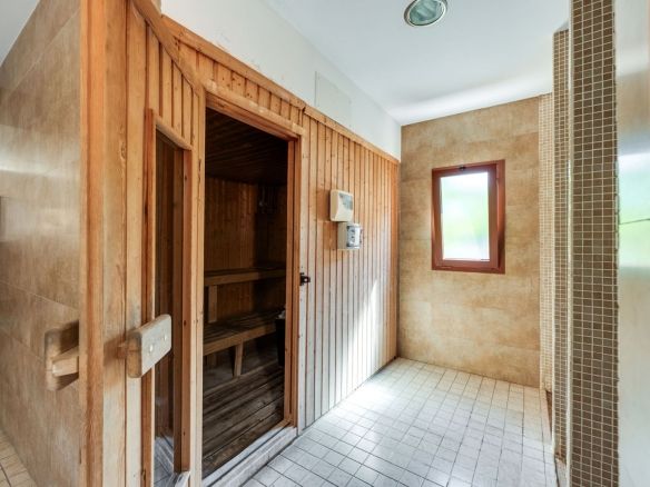 The apartment enjoys a south-east orientation, ensuring plenty of natural light throughout the day. From the living room, there is direct access to a 16 sqm terrace, which can be fitted with glass curtains for use in the winter months. The terrace also offers a lovely view of the pool from one side.