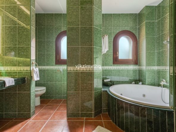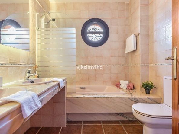 Spacious Living: The villa boasts five generously sized double bedrooms, four of which have en-suite bathrooms. The master suite is a standout, featuring a vaulted ceiling and a round jacuzzi bathtub.