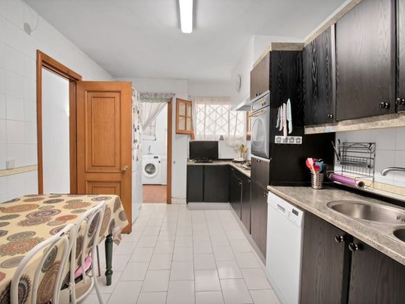 Once inside this spacious apartment, a long hallway leads to the fully fitted kitchen