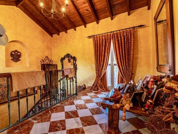 The villa`s entrance is marked by a welcoming Porch that leads to a double Height entrance hall with Fireplaces creating a warm and inviting atmosphere. Each room of the villa is Spacious and comfortable with high ceilings and abundant natural Light adding an extra touch of luxury and style .The villa is also equipped with Air-conditioning, Gas central Heating, and hot water is provided by Solar panels to ensure comfort throughout the year.