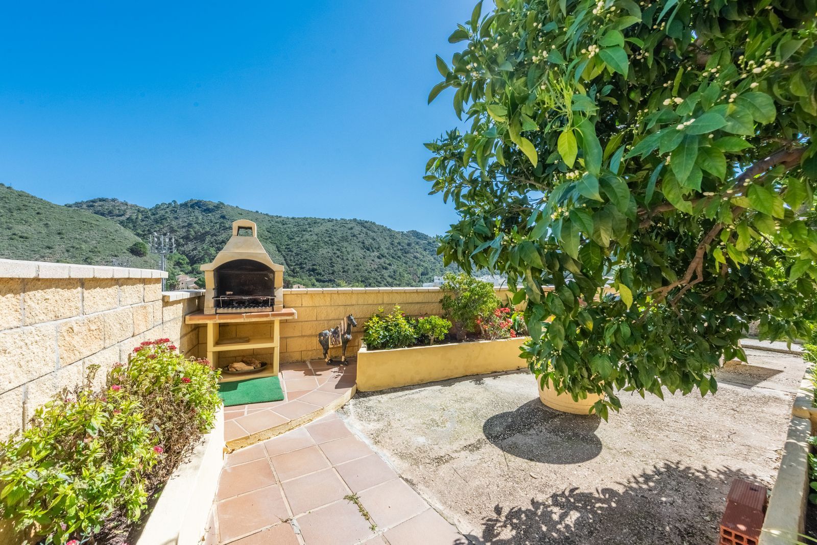 Then three comfortable bedrooms, the master with an en-suite bathroom and nice views toward the mountains of Benahavís and the football field.