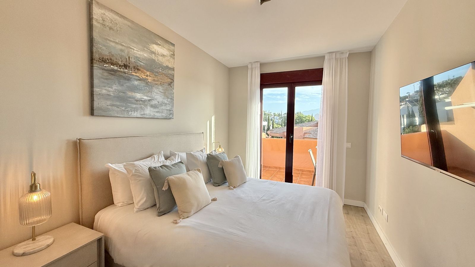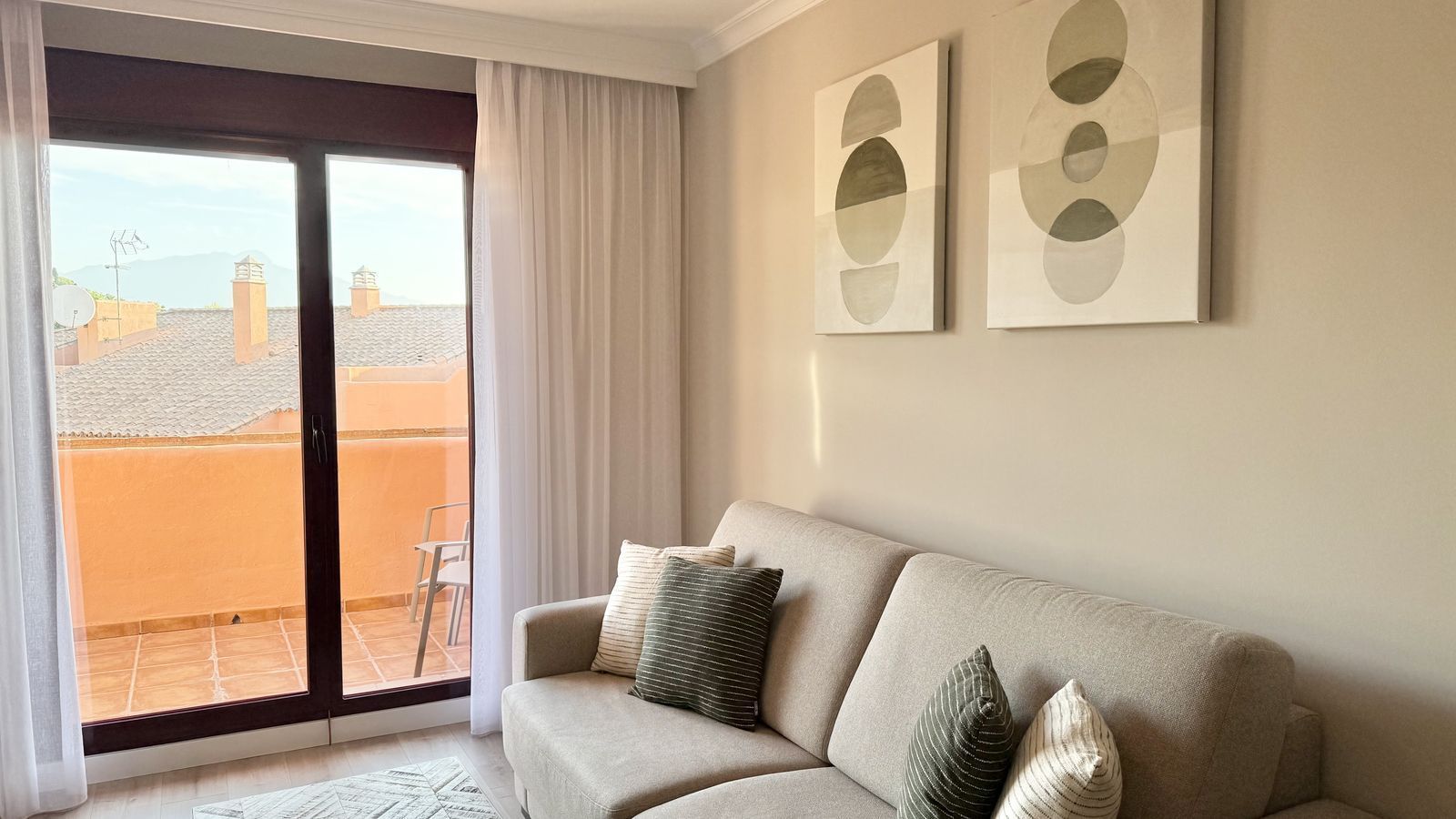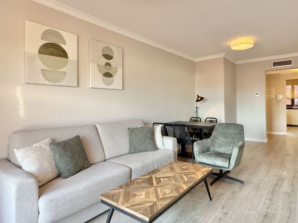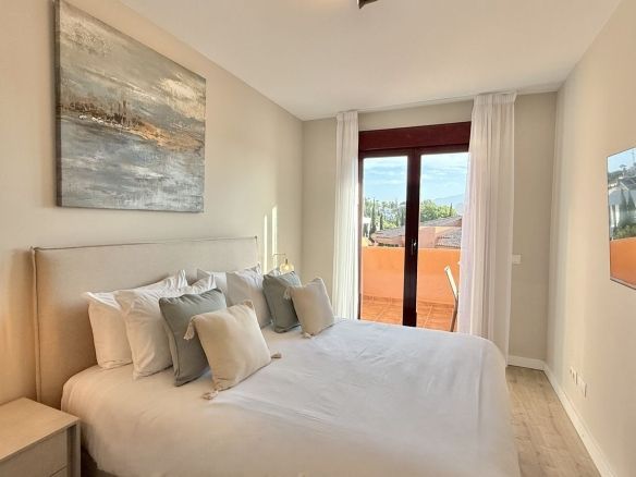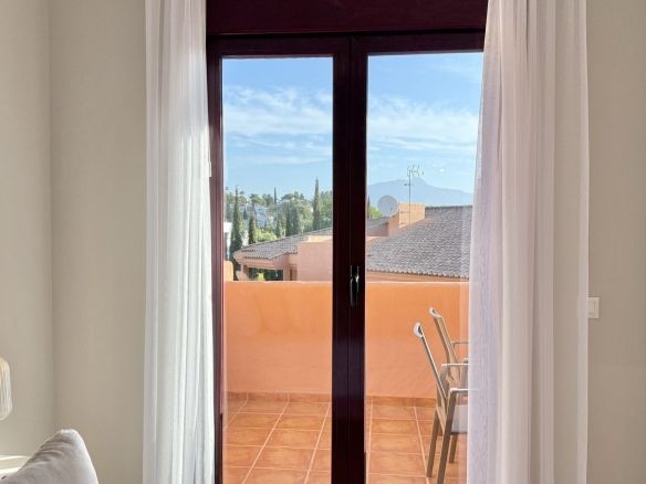 This fantastic 2 bed 2 bath apartment is fully furnished and tastefully decorated. A south-east facing private terrace overlooks the El Paraíso golf course, the La Concha mountain, and a communal swimming pool.