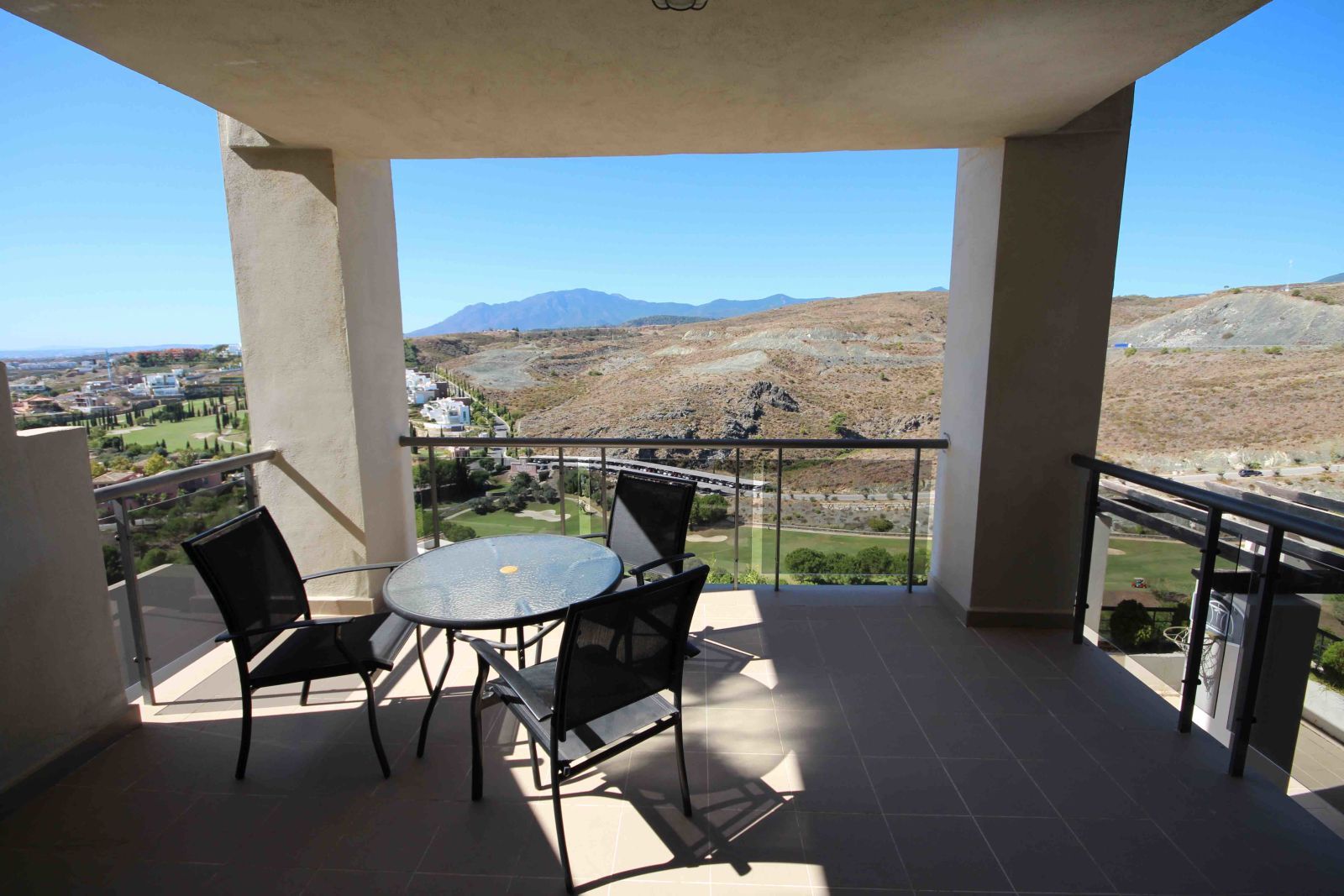 The property is in excellent condition. It has a good sized living area, modern kitchen and 2 good sized bedrooms and 2 bathrooms. Outside there is a spacious terrace of 30m2, with panoramic views over the golf resort, sea and mountains.