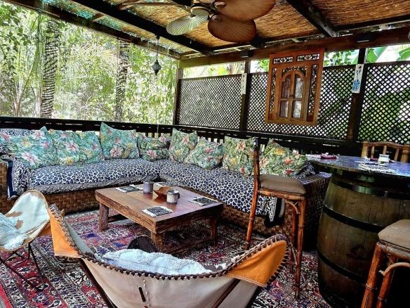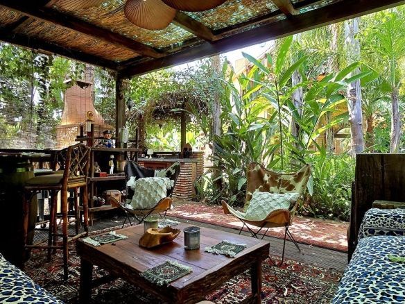 Cross the threshold and you're instantly transported. Designed for both indulgence and tranquility, the property offers a full bar and BBQ area, a stunning lagoon-style pool with cascading waterfalls, a personal gym, and a dedicated yoga and meditation deck complete with a built-in jacuzzi. The grounds are dotted with fruit trees, blending vibrant nature with calm luxury.