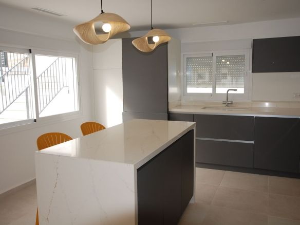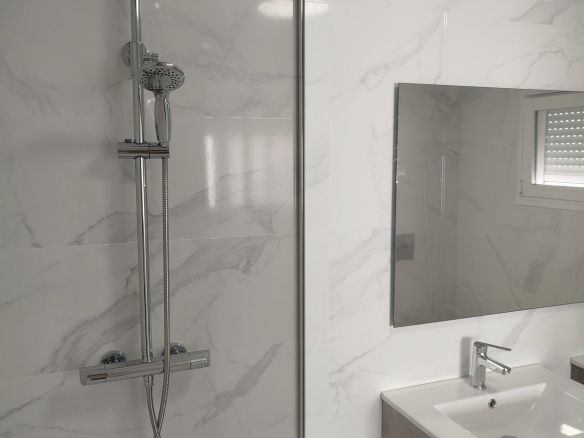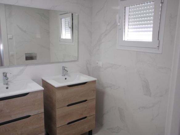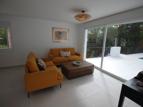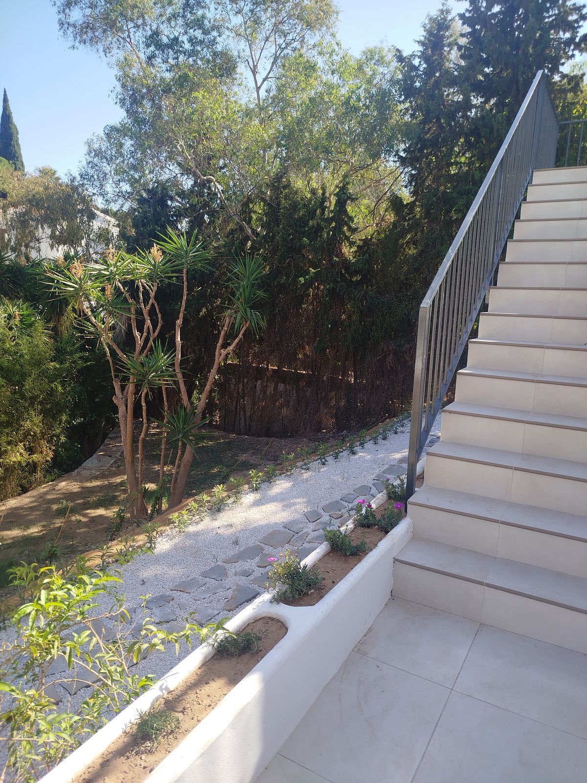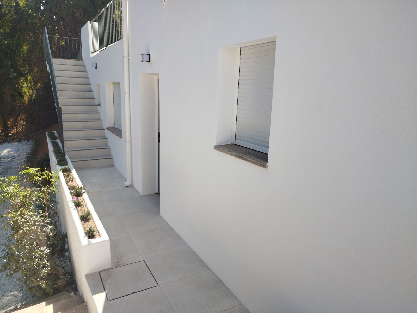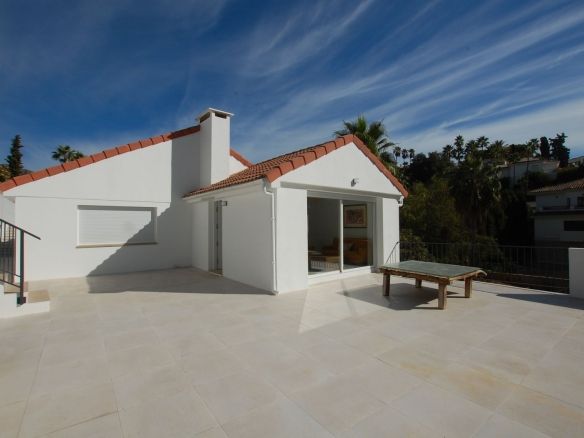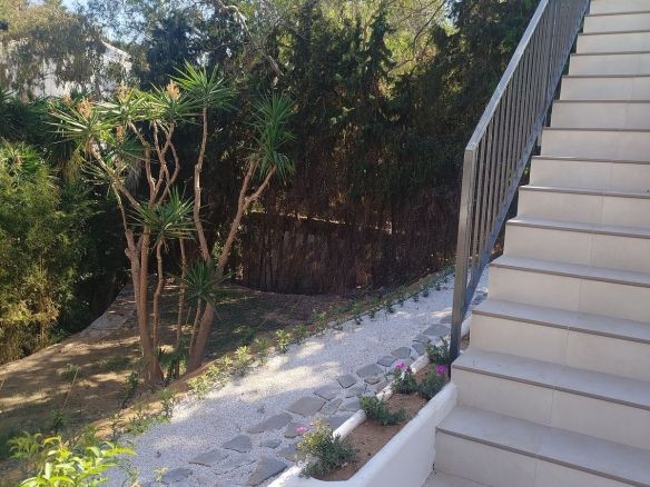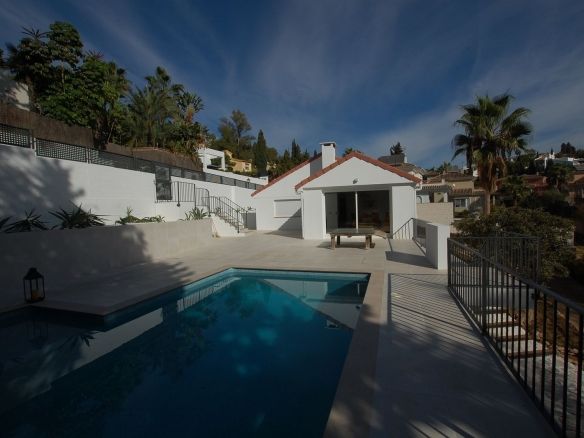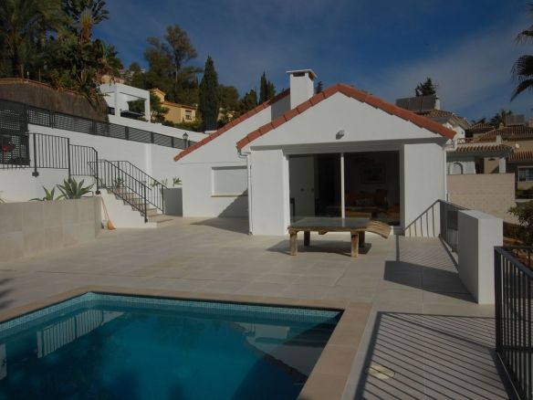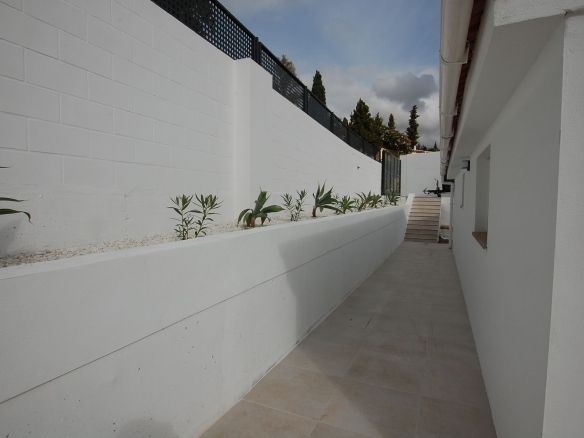 Totally renovated to a high standard and insulated with thermal insulation,you have this luxury 4 bed 4 bath villa in a quiet street in Campo Mijas with landscaped terraced gardens electric gated secure parking electric entrance gate with video entry. There are two large terraces with one surrounding the newly constructed pool. The house has two separate levels with the living room / dining room modern open plan kitchen , 2 large bedrooms both with ensuite shower and bathrooms with under floor heating and guest toilet on the entrance level with another independent bedroom with ensuite showerroom plus a large studio apartment with ensuite and storeroom on the lower level, electric blinds all water electric sewage pipes and wires are new, easy local access to all the bars restaurants of El Coto and Fuengirola set a very quiet area with video entrance and fully alarmed .